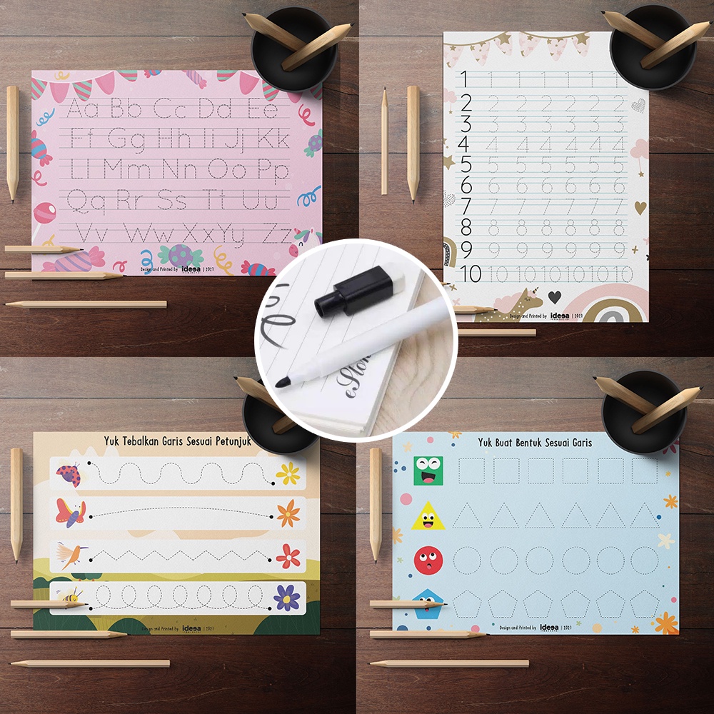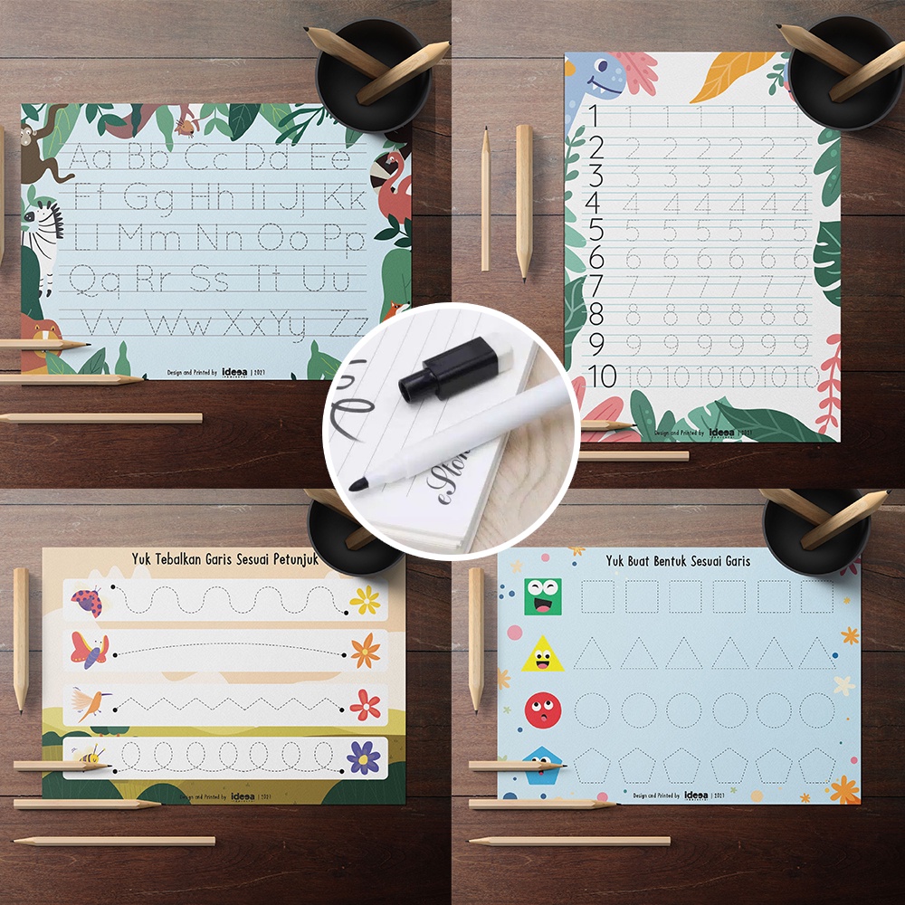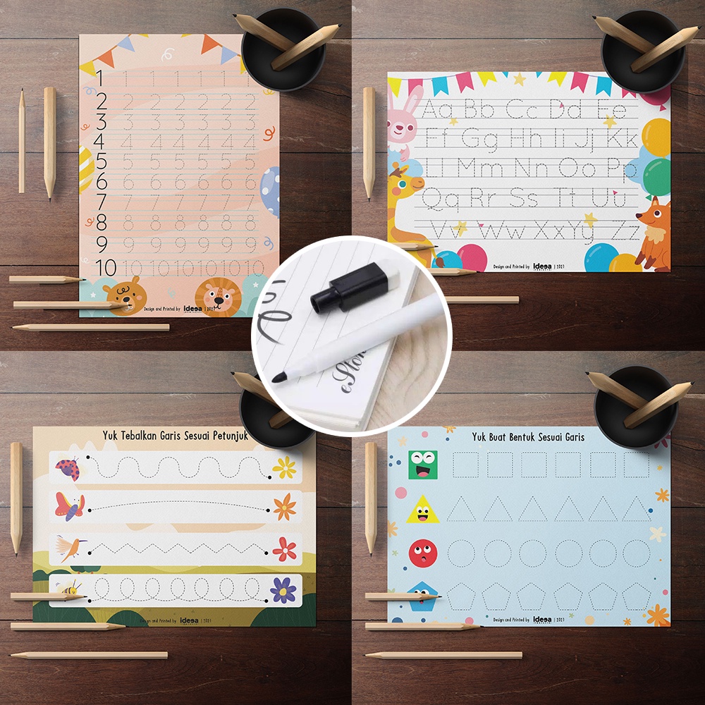 [BUNDLING] SET WORKSHEET ANAK + SPIDOL WIPE AND CLEAN (4 LEMBAR + 1 SPIDOL)