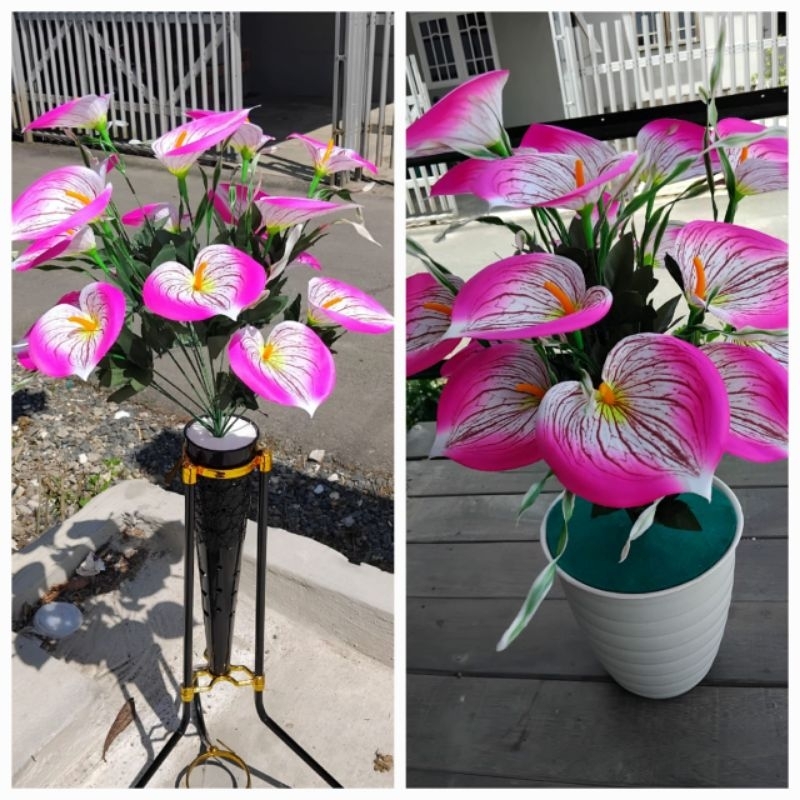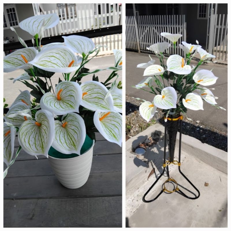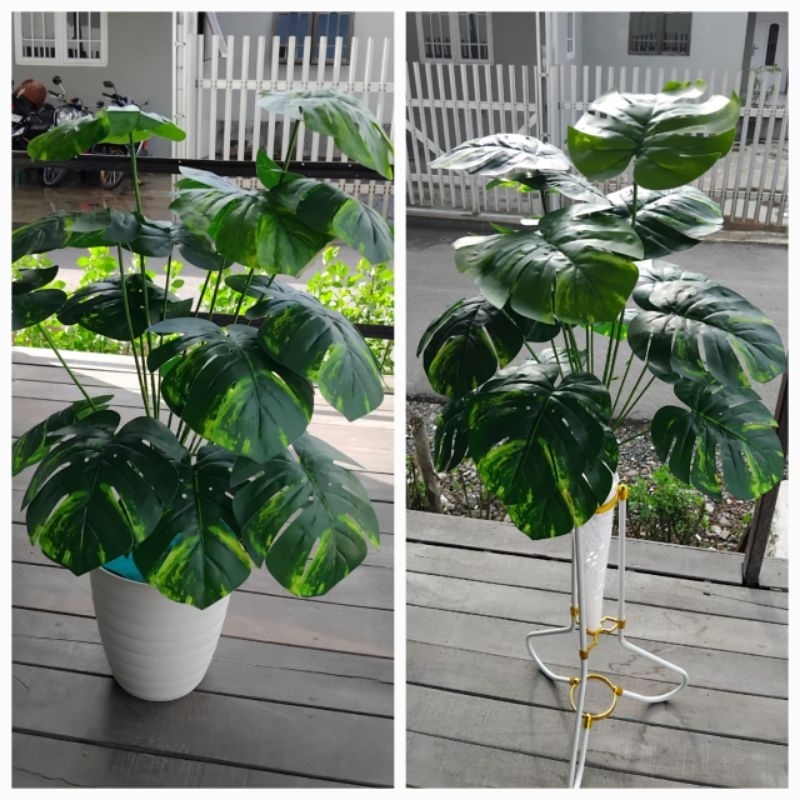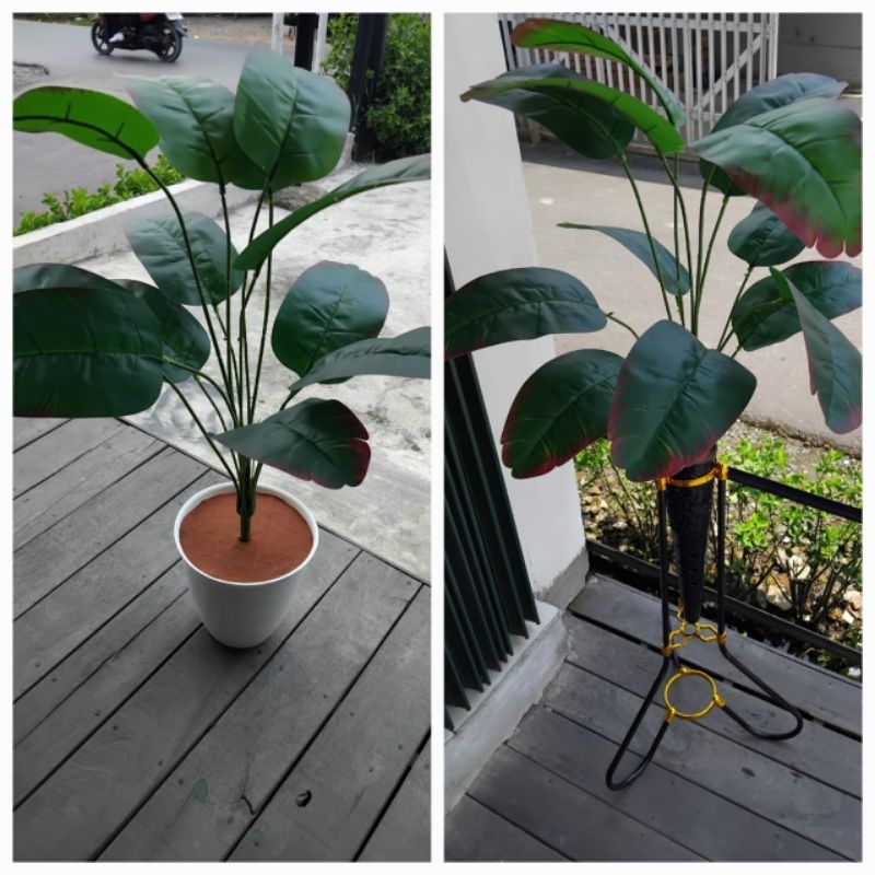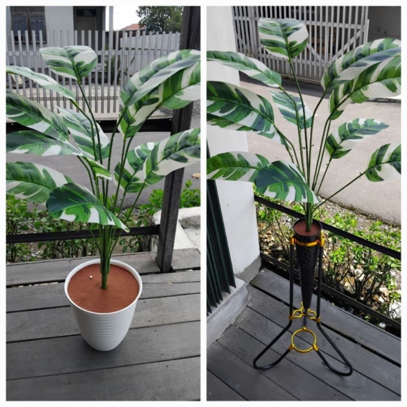 [ BUNGA + POT ] BUNGA SUDUT TANAMAN ARTIFICIAL JUMBO UNTUK POJOK RUANGAN DENGAN VAS TAWON & VAS CORONG BESI