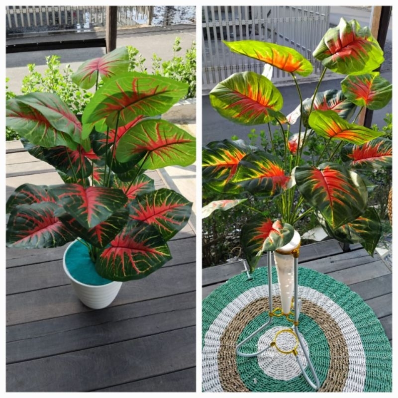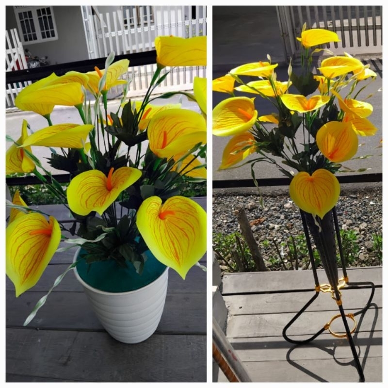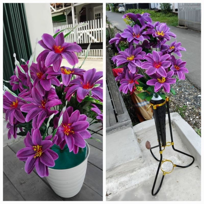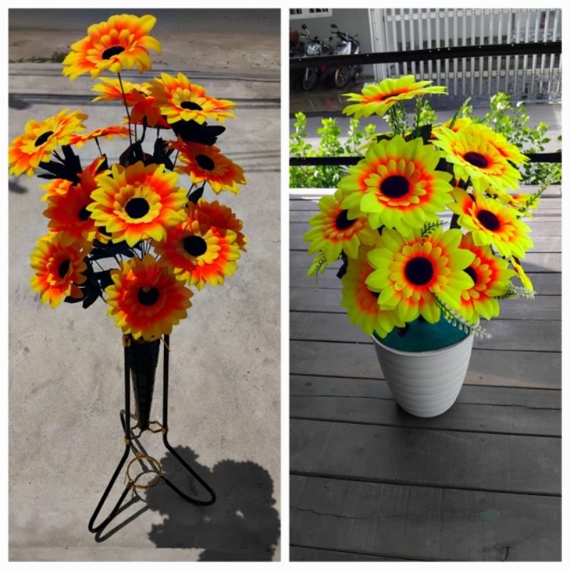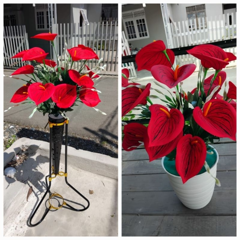 [ BUNGA + POT ] BUNGA SUDUT TANAMAN ARTIFICIAL JUMBO UNTUK POJOK RUANGAN DENGAN VAS TAWON & VAS CORONG BESI