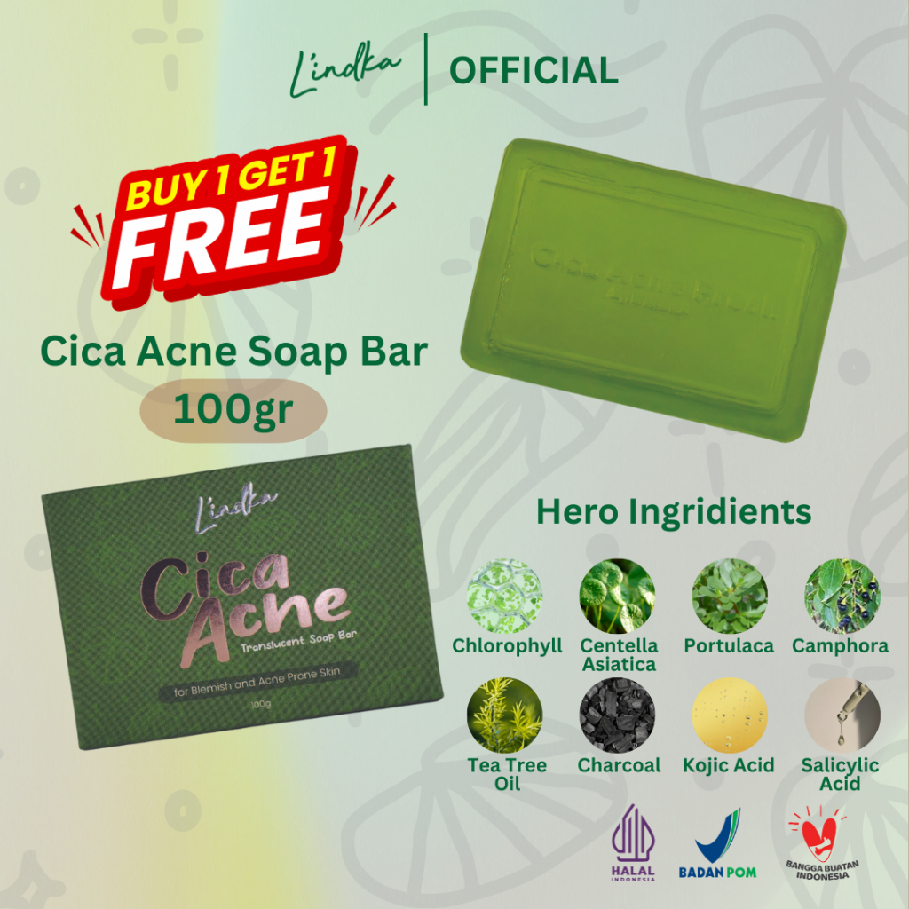 [BUY 1 GET 1 FREE] L'indka Cica Acne Soap Bar 100g (Sabun Jerawat Badan & Punggung) Lindka Skincare Original BPOM Halal
