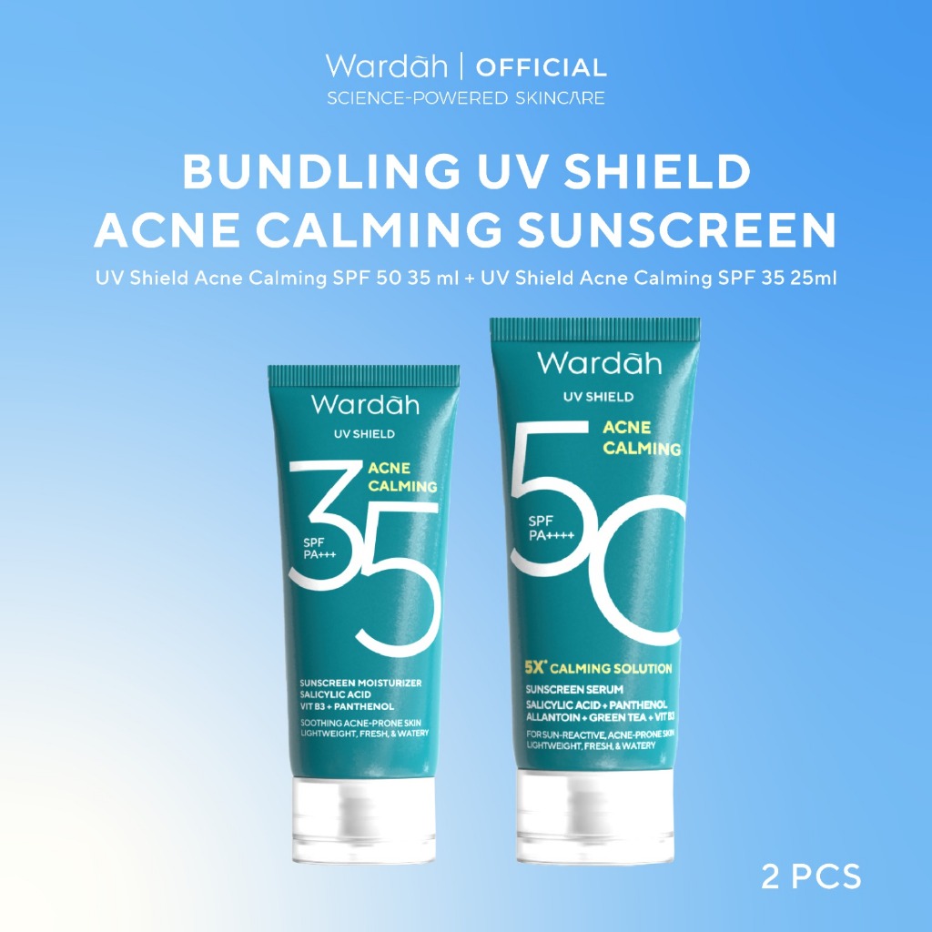 Wardah Sunscreen UV Shield Twinpack Buy 2 get 3 SPF 35 PA +++ / SPF 50 PA++++ (Airy Smooth, Essential Gel, Acne Calming, Aqua Fresh, Tone Up, Physical) - Sunscreen No. 1 Sunscreen of the Year - Skincare