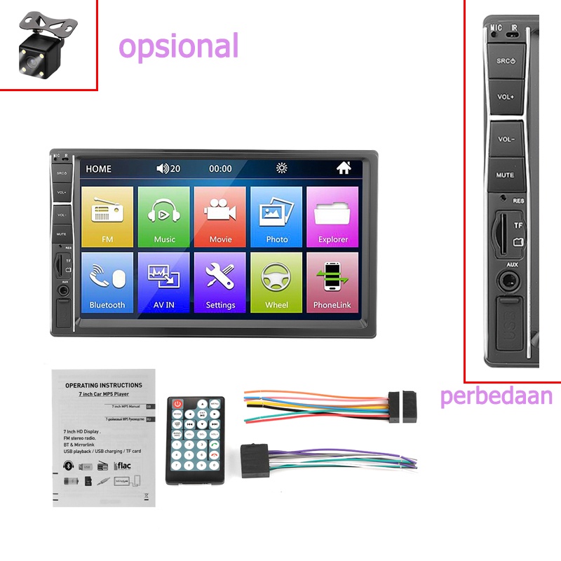 [Baru] 2din Radio Mobil 7 Inch Stereo Mobil LCD Layar Sentuh MP5 Player Bluetooth USB TF AUX-In Head Unit