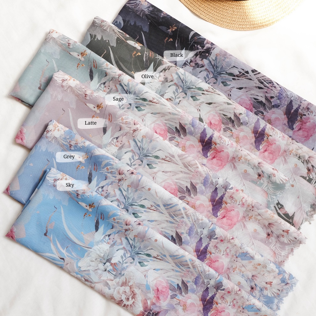 [ BUY 3 GET 1 FREE HIJAB ] HIRA - Hijabwanitacantik - Emily Scarf HIRA Polycotton Hijab Segi Empat Motif Paris Voal