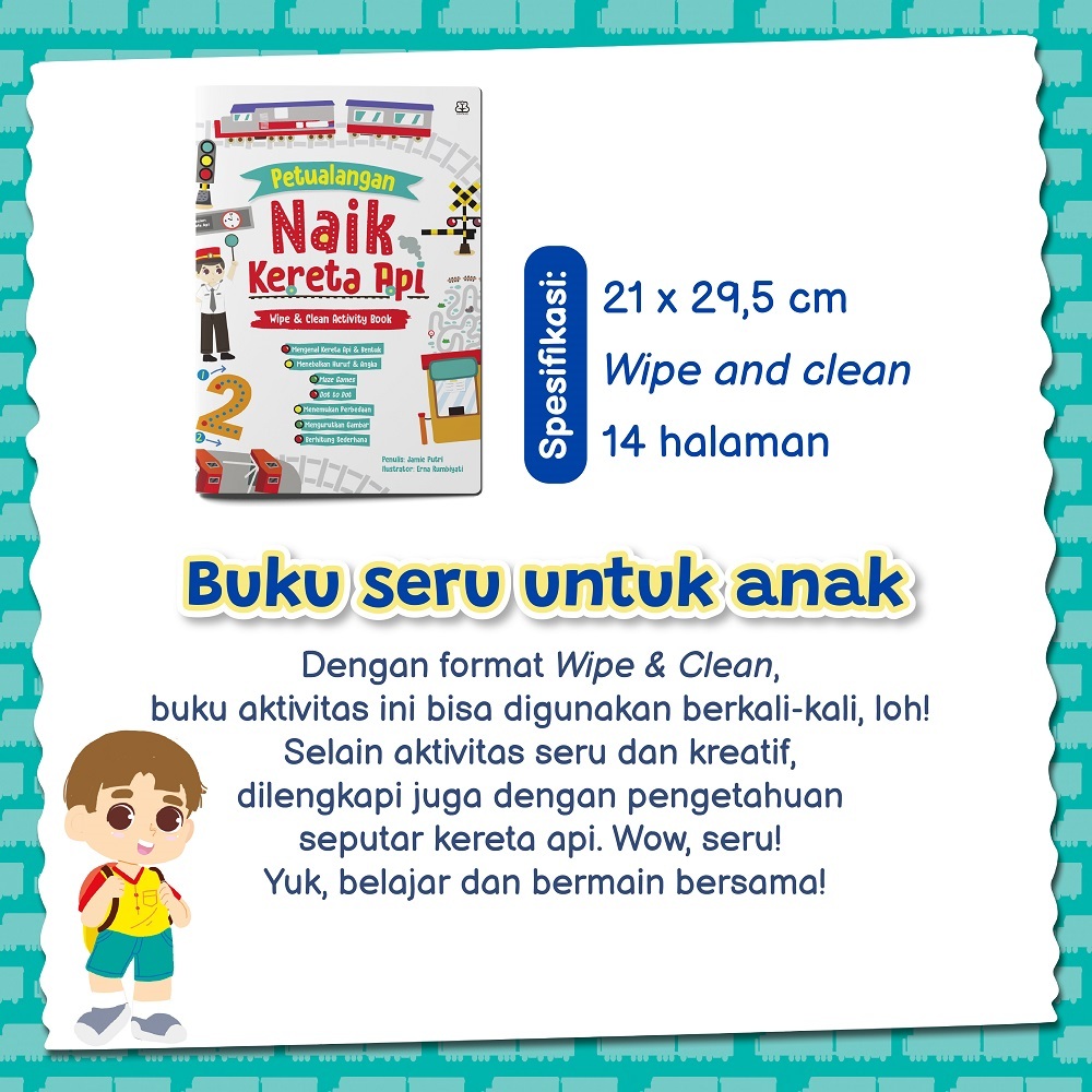 Buku Anak 1-6 thn Wipe Clean Activity: Petualangan Naik Kereta Api-Bentang