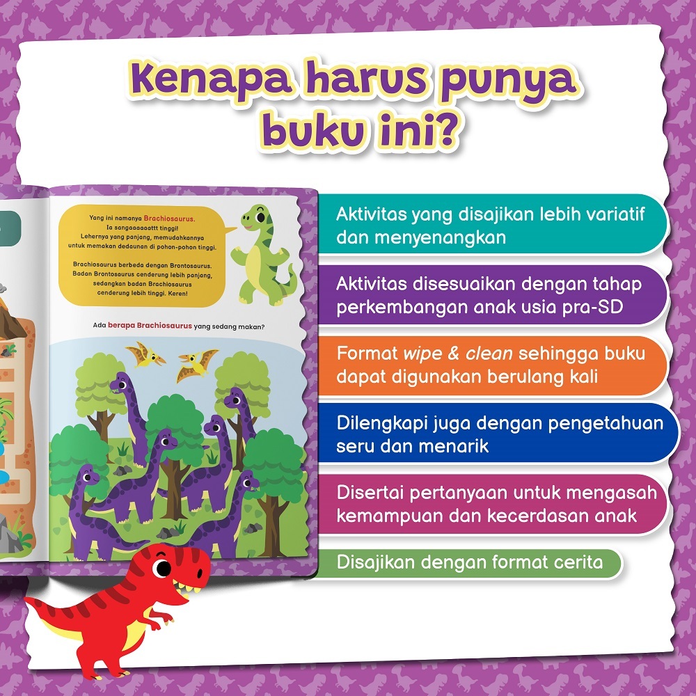 Buku Anak 1-6 thn Wipe Clean Activity: Petualangan Di Dunia Dinosaurus-Bentang