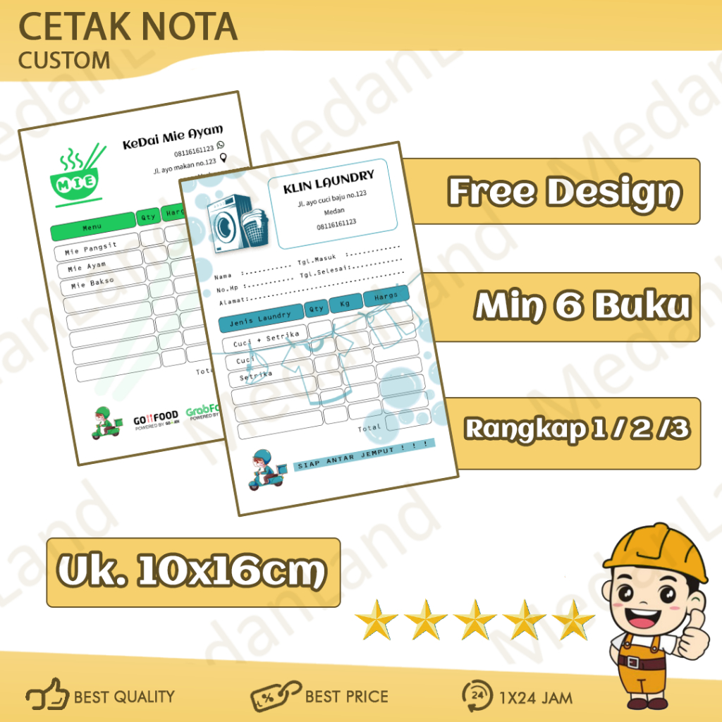 [Bisa Satuan] Cetak bon 1/4 folio nota faktur kwitansi satuan rangkap 1 2 3 100 lembar 50 set carbonless ncr untuk toko online car wash laundry restoran service hp komputer ukuran 1 1/2 1/4 1/3 1/6 1/8 folio f4 numerator