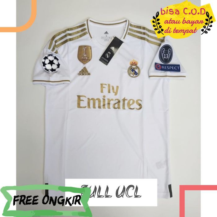 [COD]240 FULL PATCH UCL JERSEY BAJU KAOS OBLONG POLOS PRIA FUTSAL BOLA REAL MADRID HOME