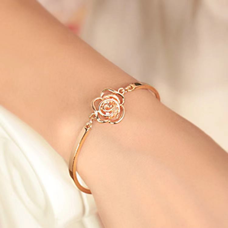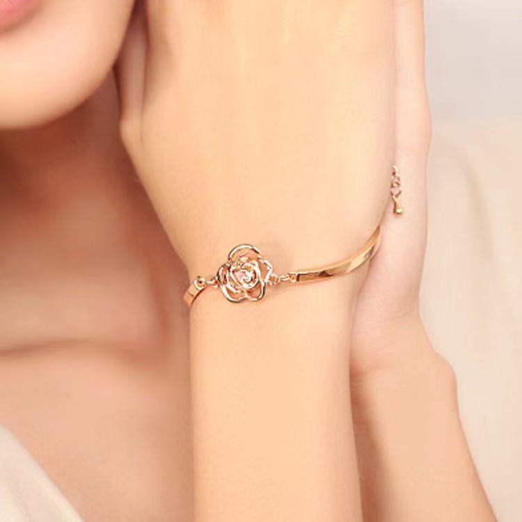 [COD] Gelang Bunga / Gelang Kristal Warna Emas Berhias Bunga Mawar / Gelang Rantai Bunga Mawar