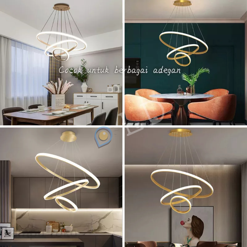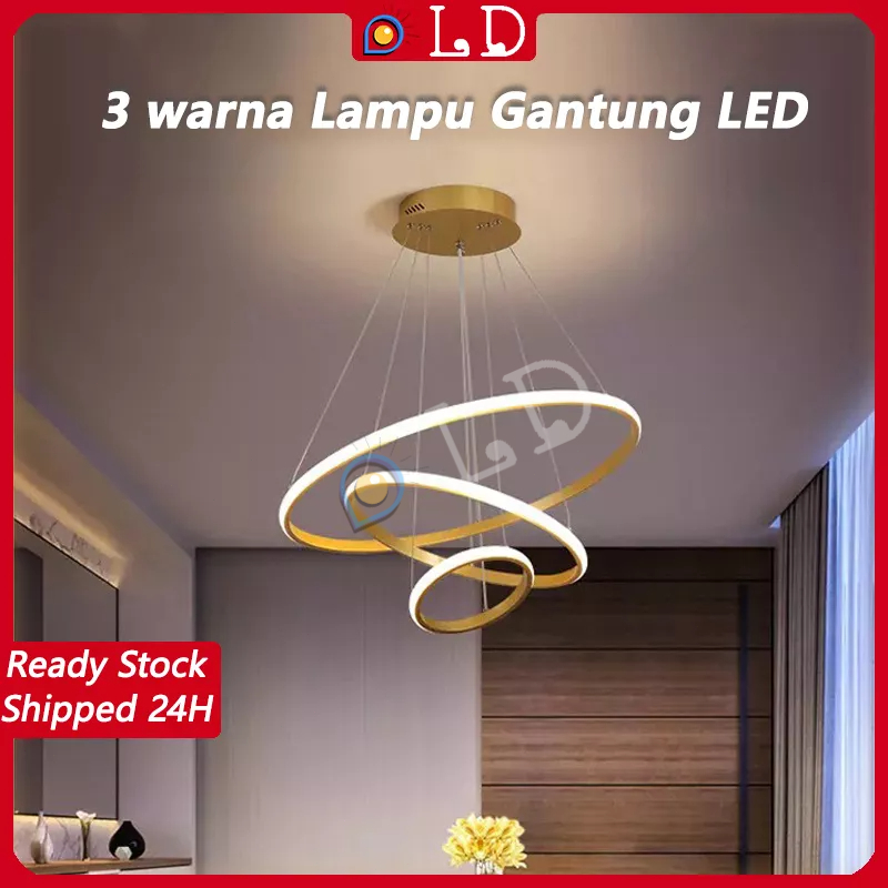 [COD] Lampu Gantung Minimalis Modern RUANG TAMU - Lampu Gantung LED 3 Ring Modern Untuk Kamar Tidur Lampu Gantung Emas 3 Ring LED 3 Warna Ceiling Lamp Sederhana Ruang Makan Ruang Tamu Chandelier