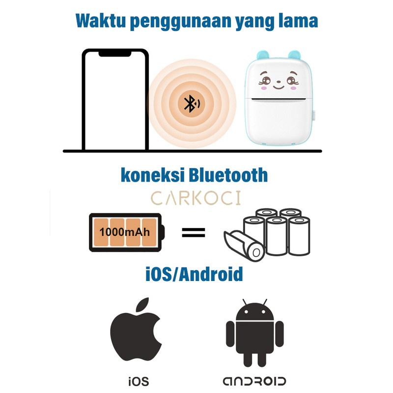 {COD}Mini Thermal Printer Bluetooth Printer Portable Tanpa Tinta Thermal Printer Label Receipt Barcode Printer