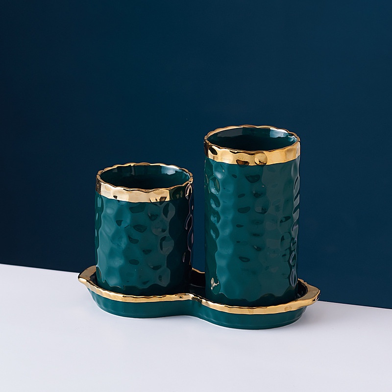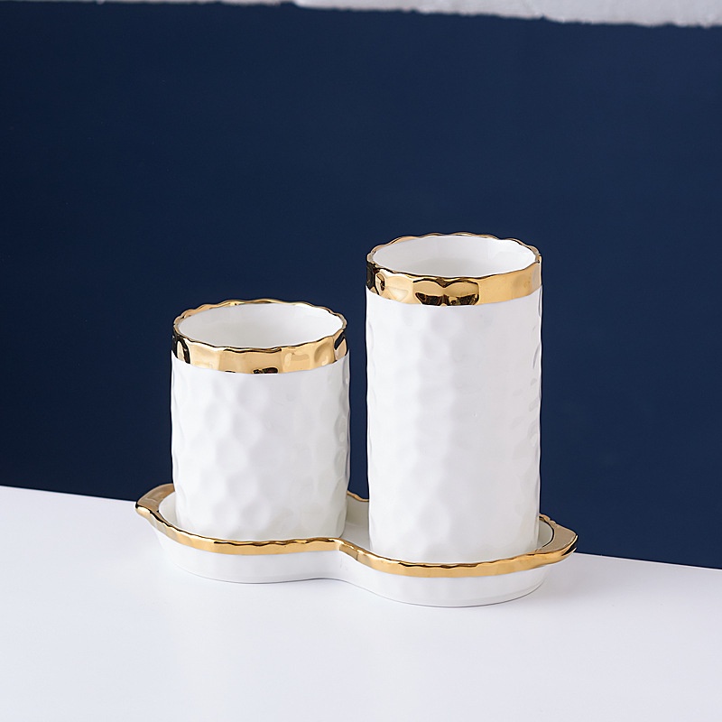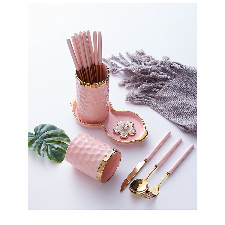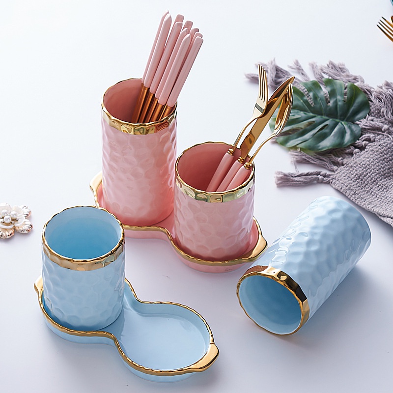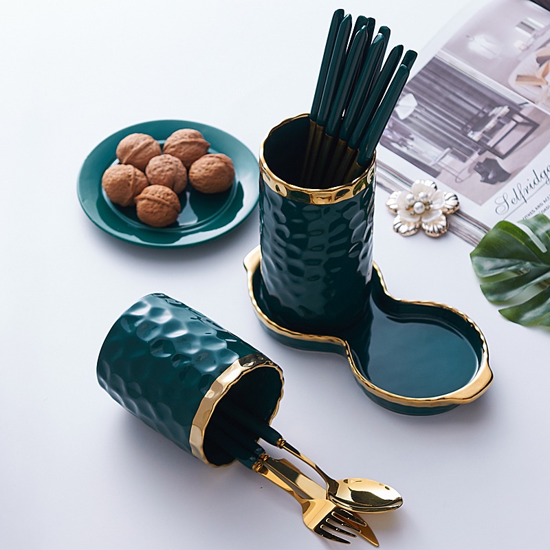 [Casa De Luxo] Tempat Sendok Keramik Dua Tabung List Gold Bermotif Polkadot / Tempat Sendok Aestetik / Tempat Sendok Mewah/ Tempat Sendok Elegan/ Tempat Sendok Glossy Gold / Gift Set