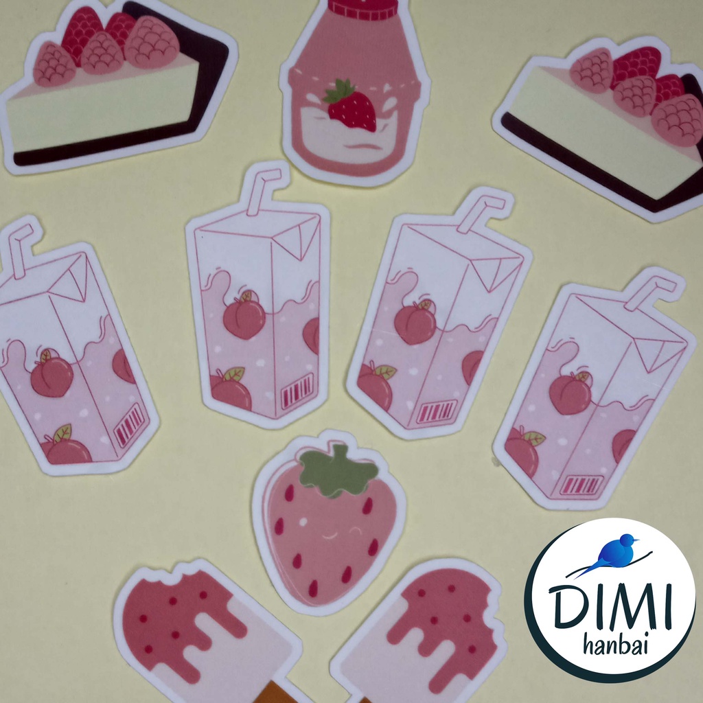 [DIMI-hanbai] Stiker Strawberry Sticker Aesthetic / Stiker Lucu Imut / Sticker Kawaii / Stiker Gemes / Sticker Strawberry / Pink Strawberry / stiker stoberi
