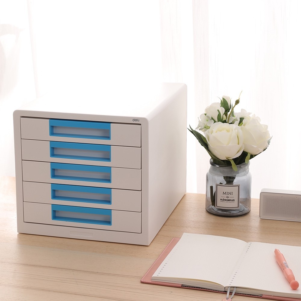 "Deli File Kabinet Biru/Pink, Bahan Plastik, 5 Ruang Penyimpanan 27,7x34,4x25,9cm EZ01033 EZ01043