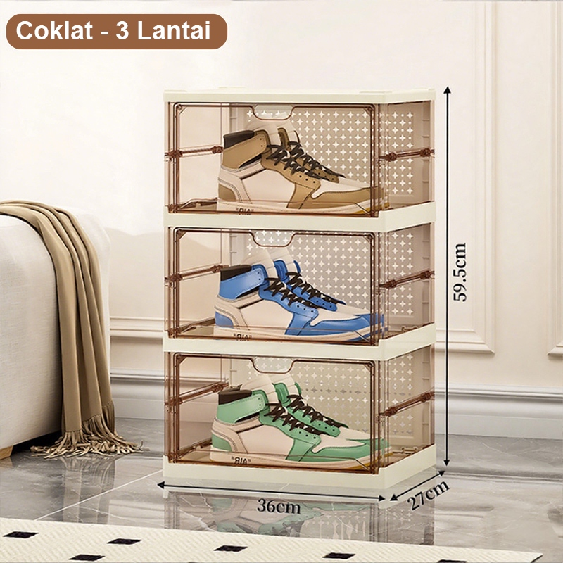 [Dream Street]Kotak Sepatu Lipat Rak Sepatu Lipat Lemari Sepatu Lipat Kotak Sepatu Transparan Plastik Lemari Multifungsi Serbaguna