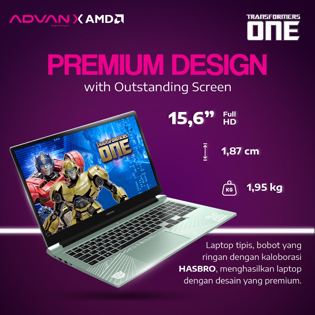 [EXCLUSIVE LAUNCH] ADVAN Laptop Gaming Pixwar x Transformers | AMD Ryzen 7 6800H | 16GB/512GB | 15.6" FHD | WIFI 6 | Dual Cooling System | Windows 11 | Garansi Resmi 1 Tahun