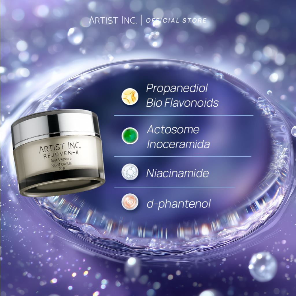 [DISCOUNT up to 50%] ARTIST INC. REJUVEN-8 Night Cream – Rest & Restore Night Cream Krim Malam Tekstur Ringan, Melembapkan, Memperbaiki Skin Barrier, Redakan Kemerahan, Regenerasi Kulit, Non-Comedogenic, Aman untuk Kulit Sensitif, Dermatologically Tested