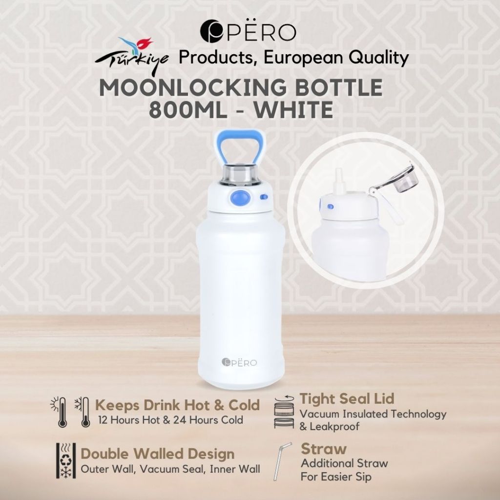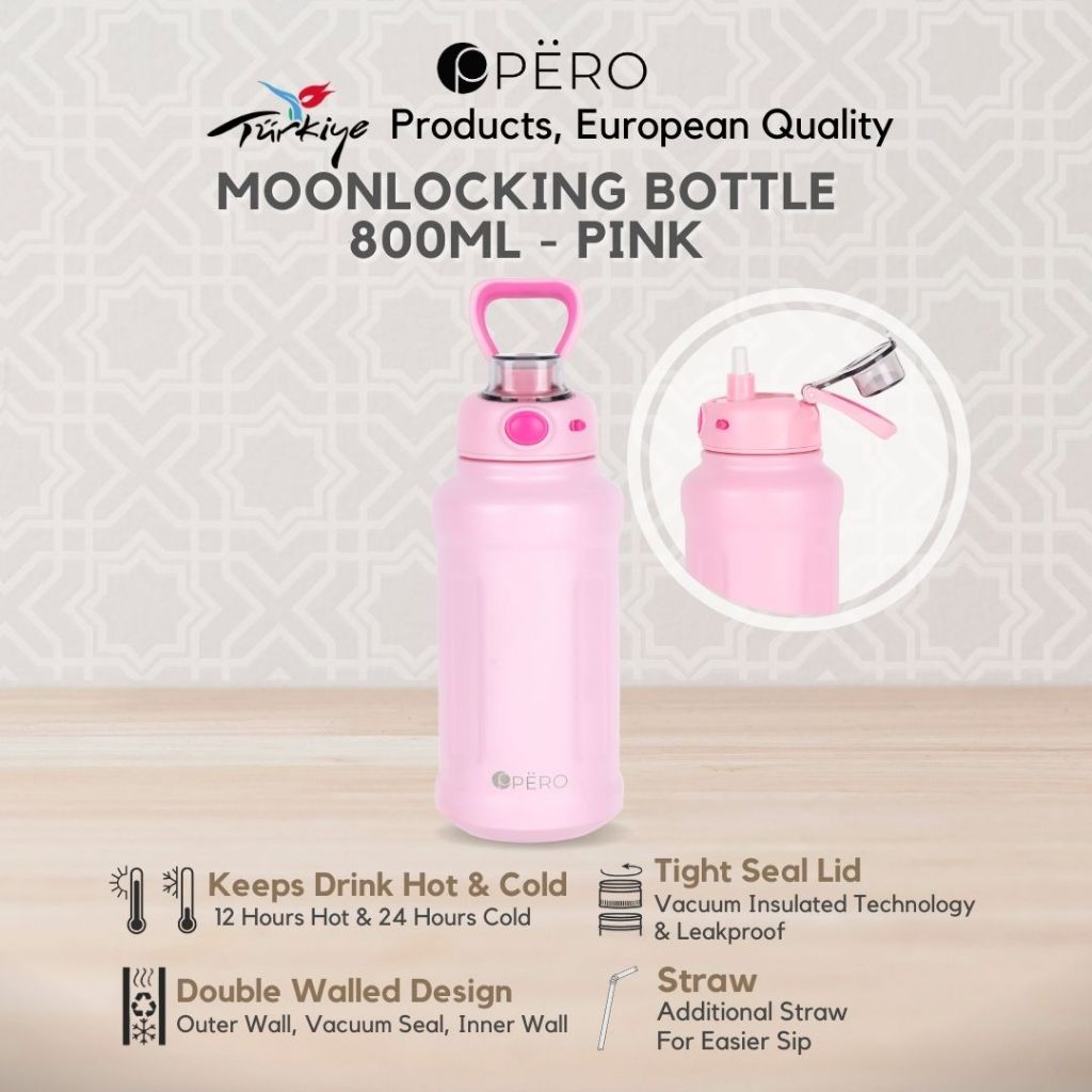 [EXCLUSIVE LAUNCHING] Pero Moon Locking Permos Bottle 800ML Leakproof / Botol Minum Tumbler Vakum dengan Sedotan Tahan Panas dan Dingin Anti Tumpah