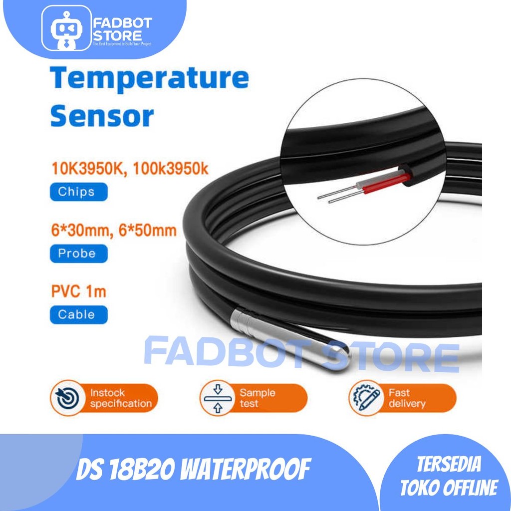 [FADBOT] DS18B20 Waterproof Temperature Suhu Sensor Probe Arduino