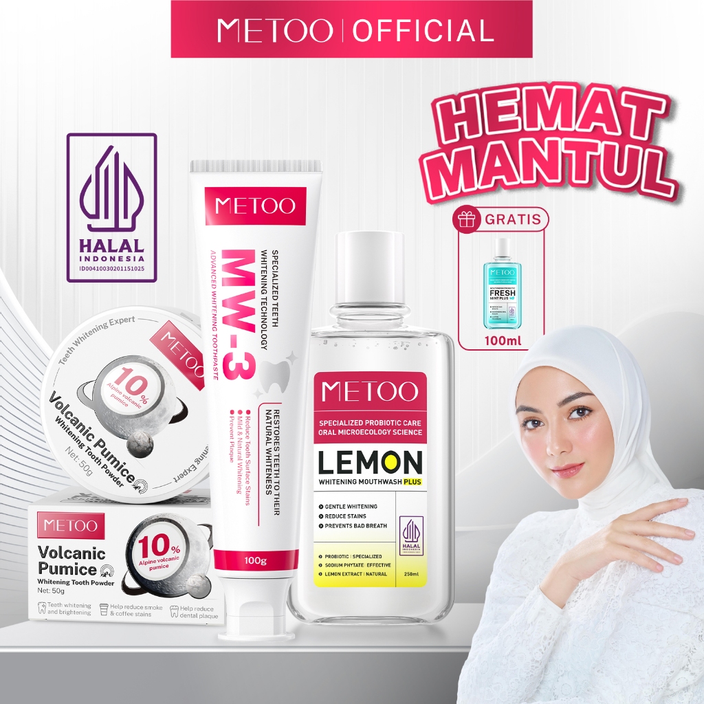 [FREE 100ml] BPOM - METOO Tooth Paste 100gr / Tooth Powder 50gr / Mouthwash 250 - Gigi Putih / Bebas Karang Gigi / Pasta Gigi Probiotik / Karang Gigi / Gusi Sensitif / Mouthwash Probiotik/Cegah Bau Mulut/Membersihkan Noda Gigi / non-alkoh