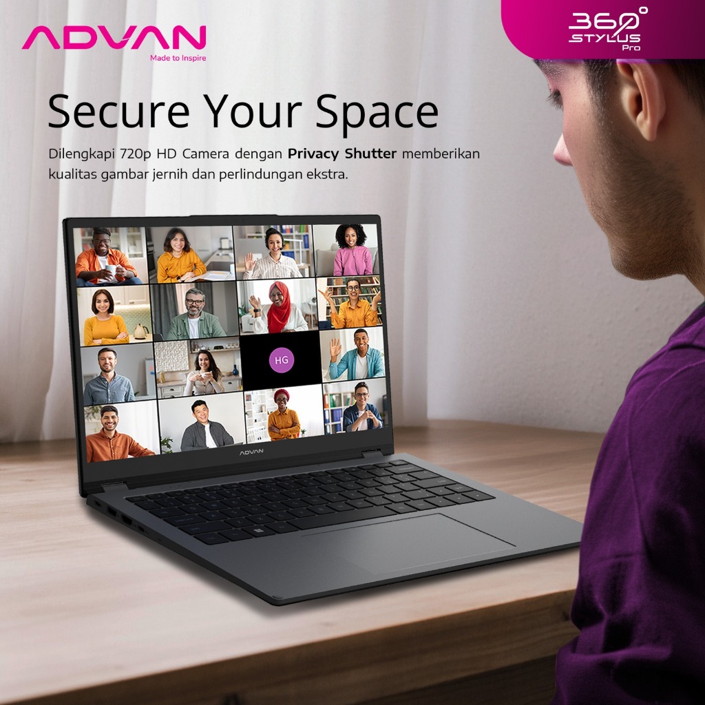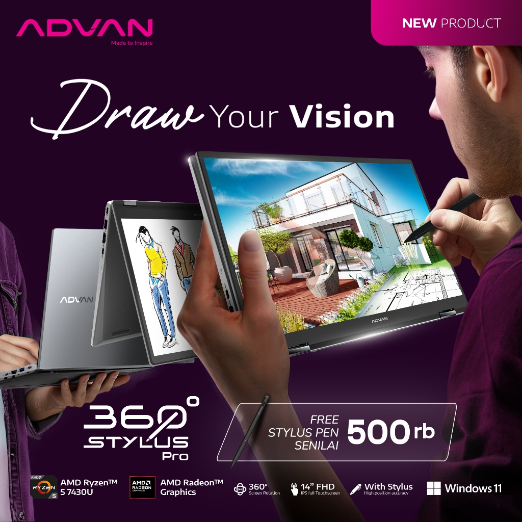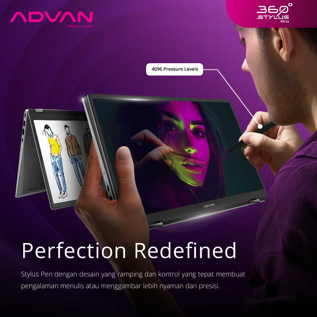 [FREE STYLUS PEN] ADVAN Laptop 360 Stylus Pro Laptop 2 in 1 AMD Ryzen 5 7430U 14" IPS FHD Touchschreen 8GB/256GB Upgradable Storage Windows 11 - Garansi 1 Tahun