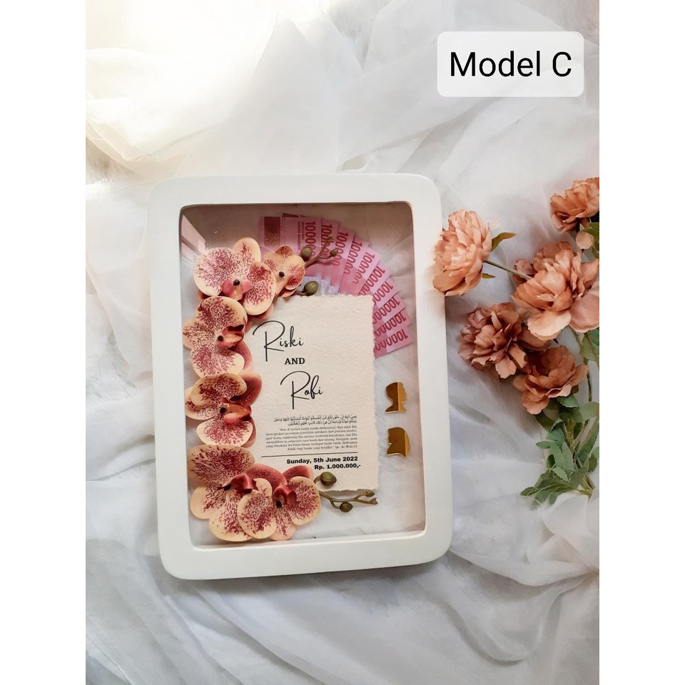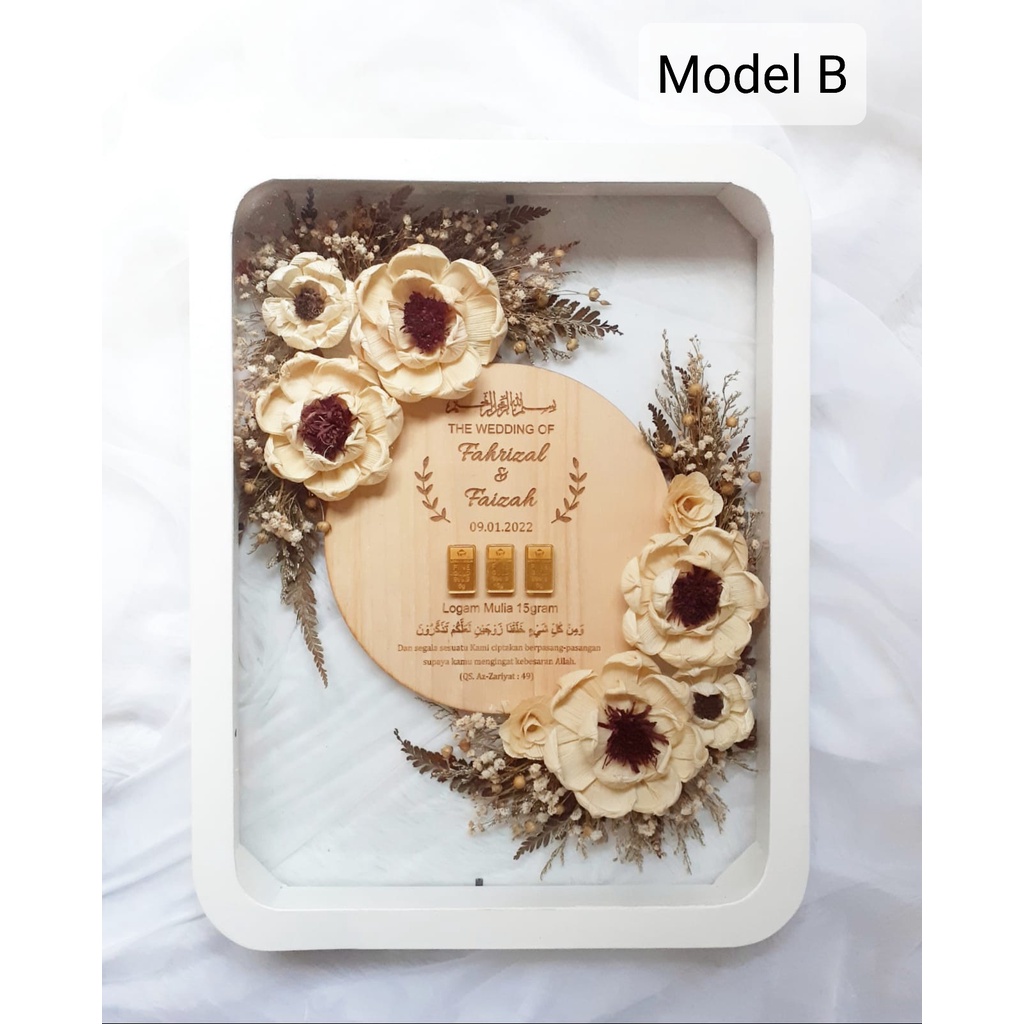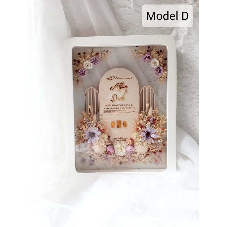 [FULL BUNGA 25x35 CM] INCLUDE HIASAN BUNGA Frame Mahar ASKARA/ Mahar Pernikahan Bingkai Askara PUTIH 25x35 cm