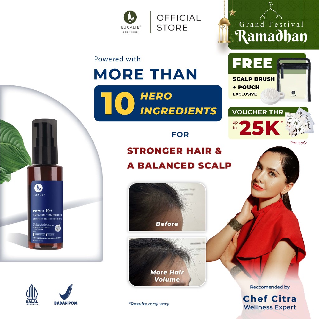 [Flash Sale] Eucalie Rosemary Oil & Minyak Kemiri, Power 10+ Hair Oil + Scalp Care Serum, perawatan rambut rontok, tipis & kulit kepala berketombe, rambut tampak tebal & bervolume