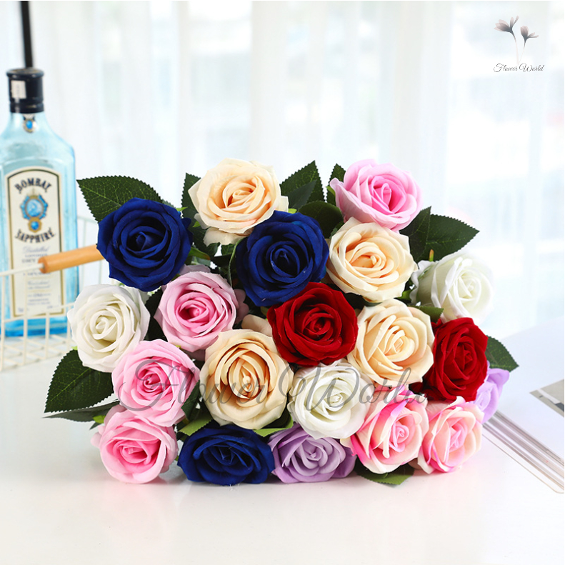 [FlowerWorld]Artificial Bunga Mawar 1 tangkai Bahan Beludru / Bunga Artficial Rose Bunga Palsu Plastik Buatan Imitasi Hias Dekor Buket Bouquet Rumah Pesta/Bunga Hias Plastik/Bunga Hias Plastik Murah Dan Import/Bunga Hias Per Tangkai