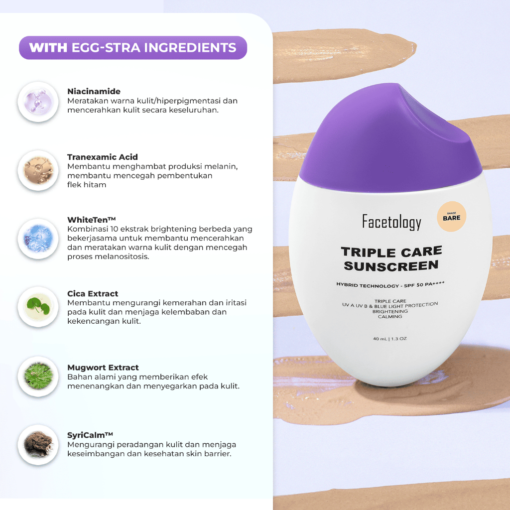 [Free Acne Calm Moist 10ml Pot] Exclusive Facetology Triple Care Sunscreen Tinted SPF 50 PA++++ 40ML