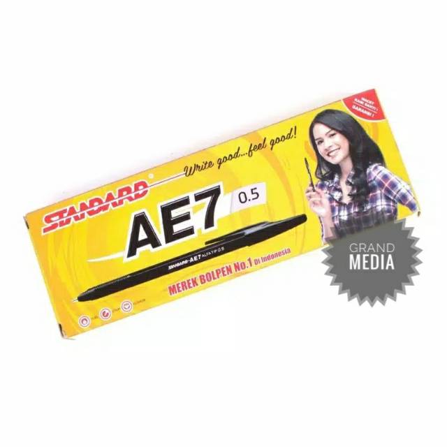 [GRAND MEDIA] BALLPOINT / PENA / PULPEN STANDARD AE7 HITAM / BIRU / MERAH / 1PACK (12PCS)