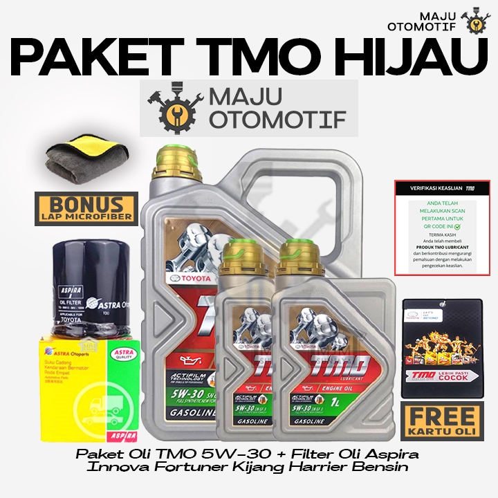 [GRATIS FILTER OLI] PAKET Ganti Oli Mesin TMO HIJAU SAE 5W-30 6 Liter ASPIRA Kijang Innova Fortuner Bensin Harrier Hilux Alphard 5W30 6Liter