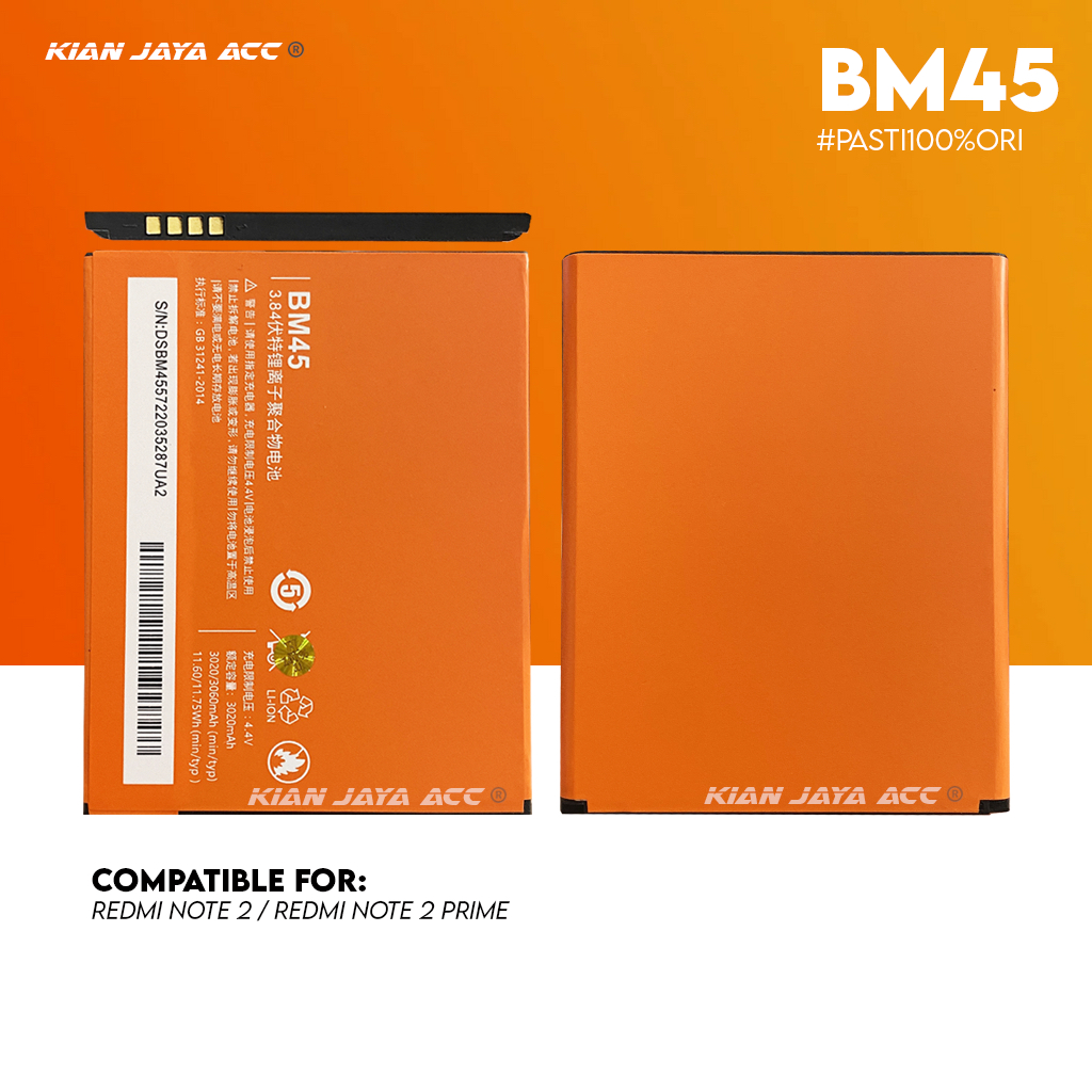 [Garansi 100% Ori] Baterai Redmi Note 2 BM45 Batre Batrai Battery Original
