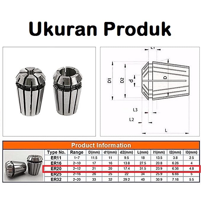 [HAEBOT] Collet ER20 ER 20 ER20A 3.17 4 5 6.35 8 10 12 16 mm Spindle CNC Router Kolet Bor Mini DC DIY