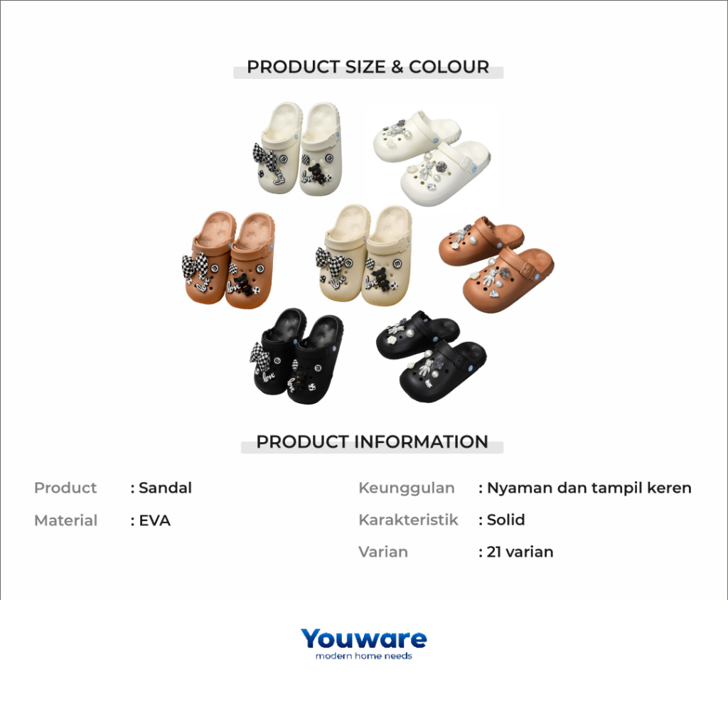 [HARGA CUCI GUDANG] Youware - Fione Sandal Warna-Warni / Sendal Karet / Sandals Clog / Sendal Murah / Sendal Perempuan / Sendal Aesthetic / Sepatu Sendal Jalan-Jalan Melangkah Lebih Nyaman Langkah Pasti