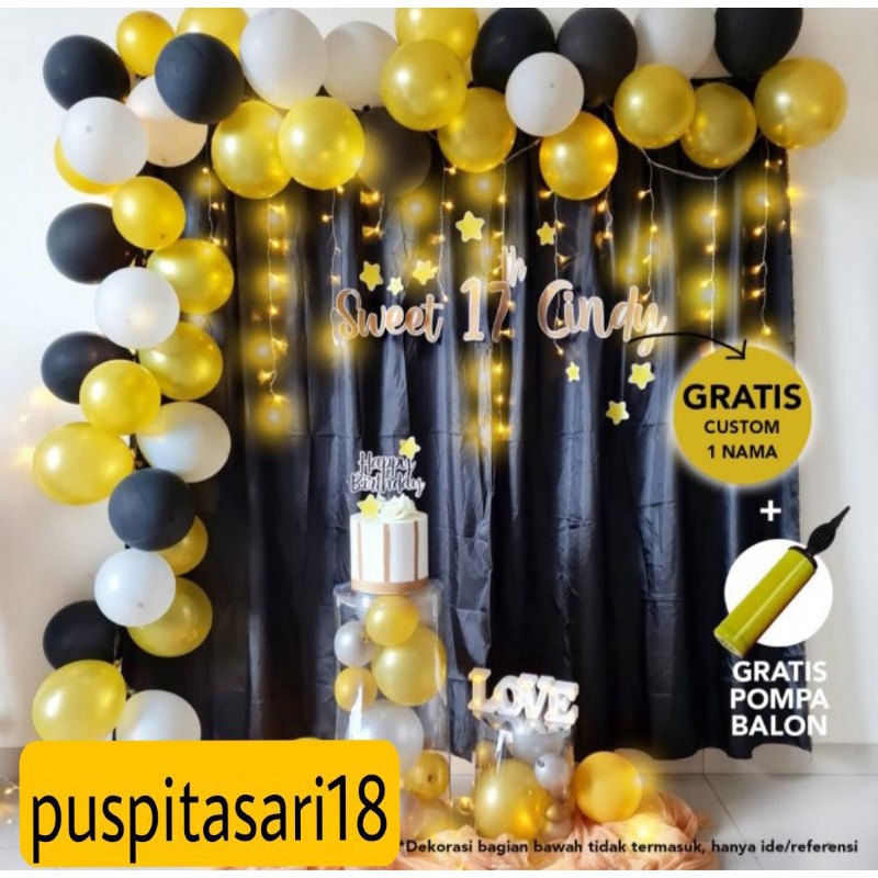 [ HEMAT MEWAH ] paket dekorasi ulang tahun sweet seventeenth backdrop black gold fancy LAMARAN/AQIQAH DLL