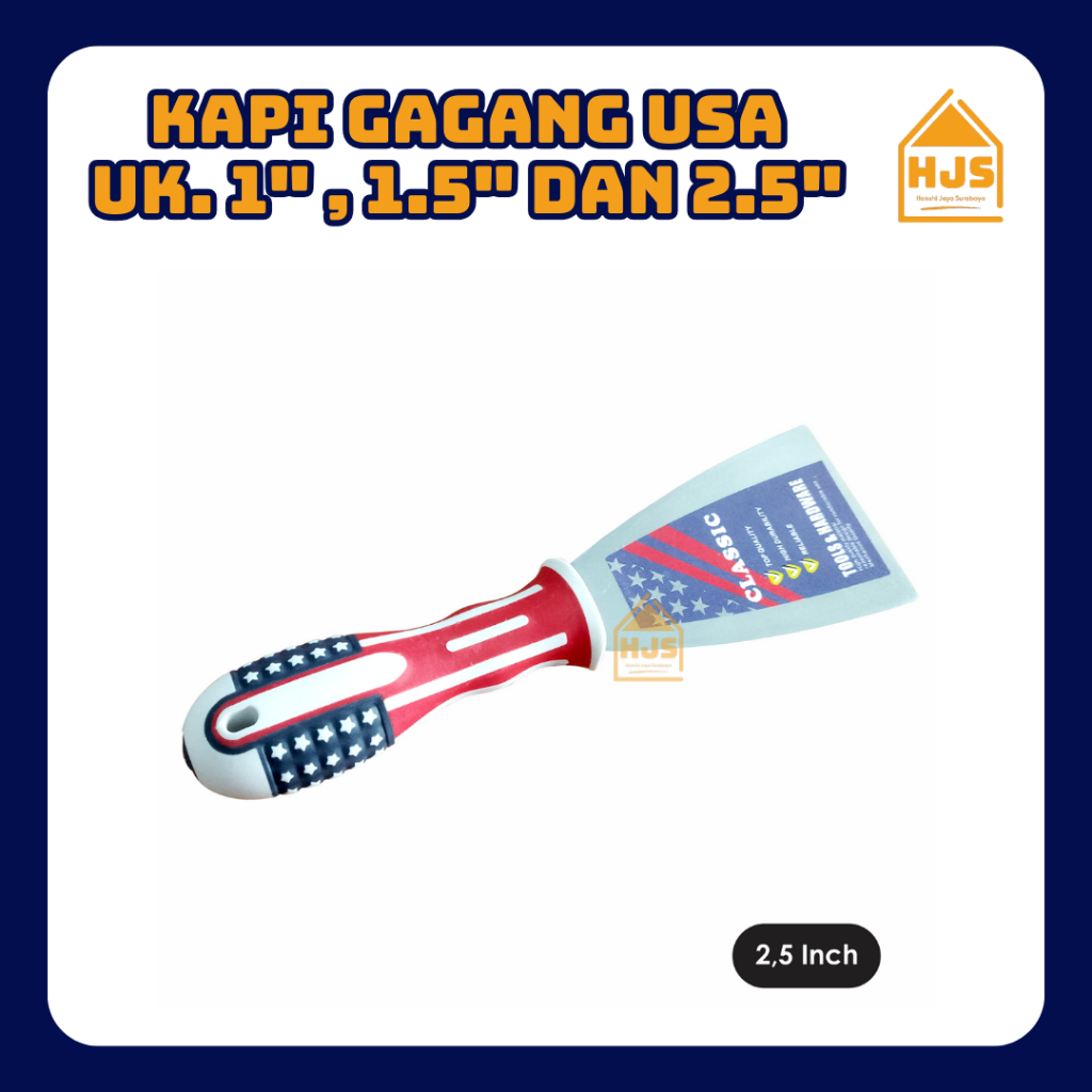 [HJS] Kapi besi gagang karet USA PREMIUM QUALITY / Putty Knife / Kapi Cat / Kape Cat Carbon Steel Scrapper / Kapi Dempul uk.1"- 2"