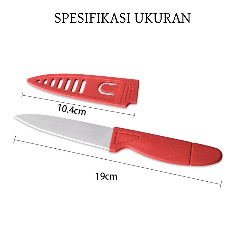 [HKL] PISAU BUAH SARUNG MERAH / PISAU DAPUR STAINLESS STEEL / PISAU BUAH / PISAU POTONG SAYUR / PISAU SERBAGUNA