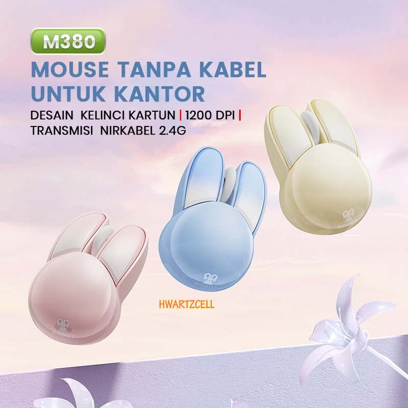 [HWARTZ] Robot Mouse Wireless M380 Mouse Desain Rabbit Kelinci Lucu Silent klik Button 1200 DPI Garansi 1 th
