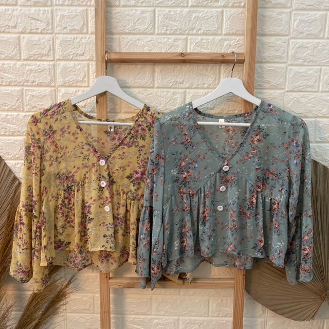 BLOUSE CHIFFON FLORAL BKK ATASAN MOTIF BUNGA
