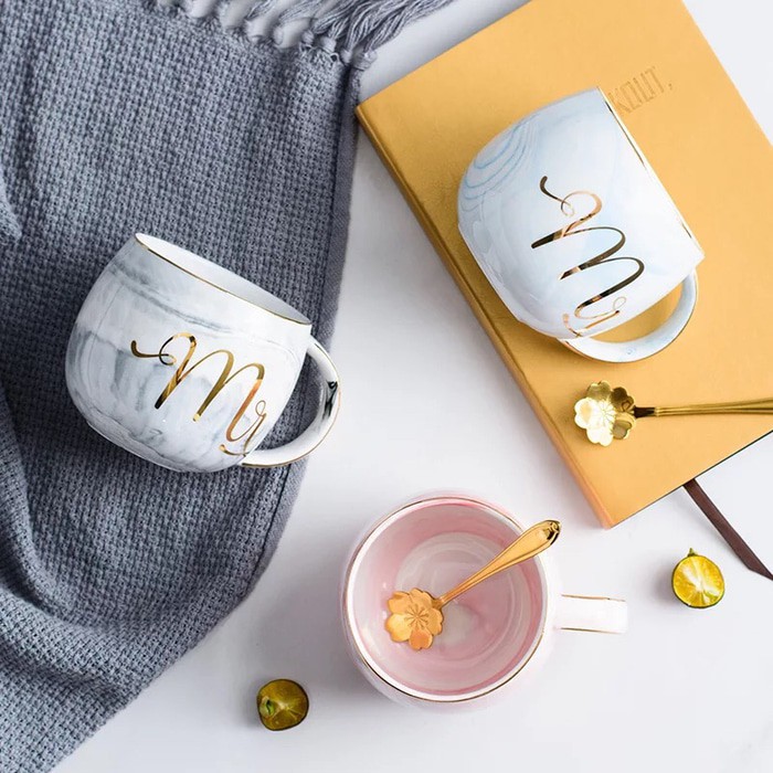 [IMPORT] Marble Ceramic Coffee Mugs couple Gold Plating Mr and Mrs Printed 2018