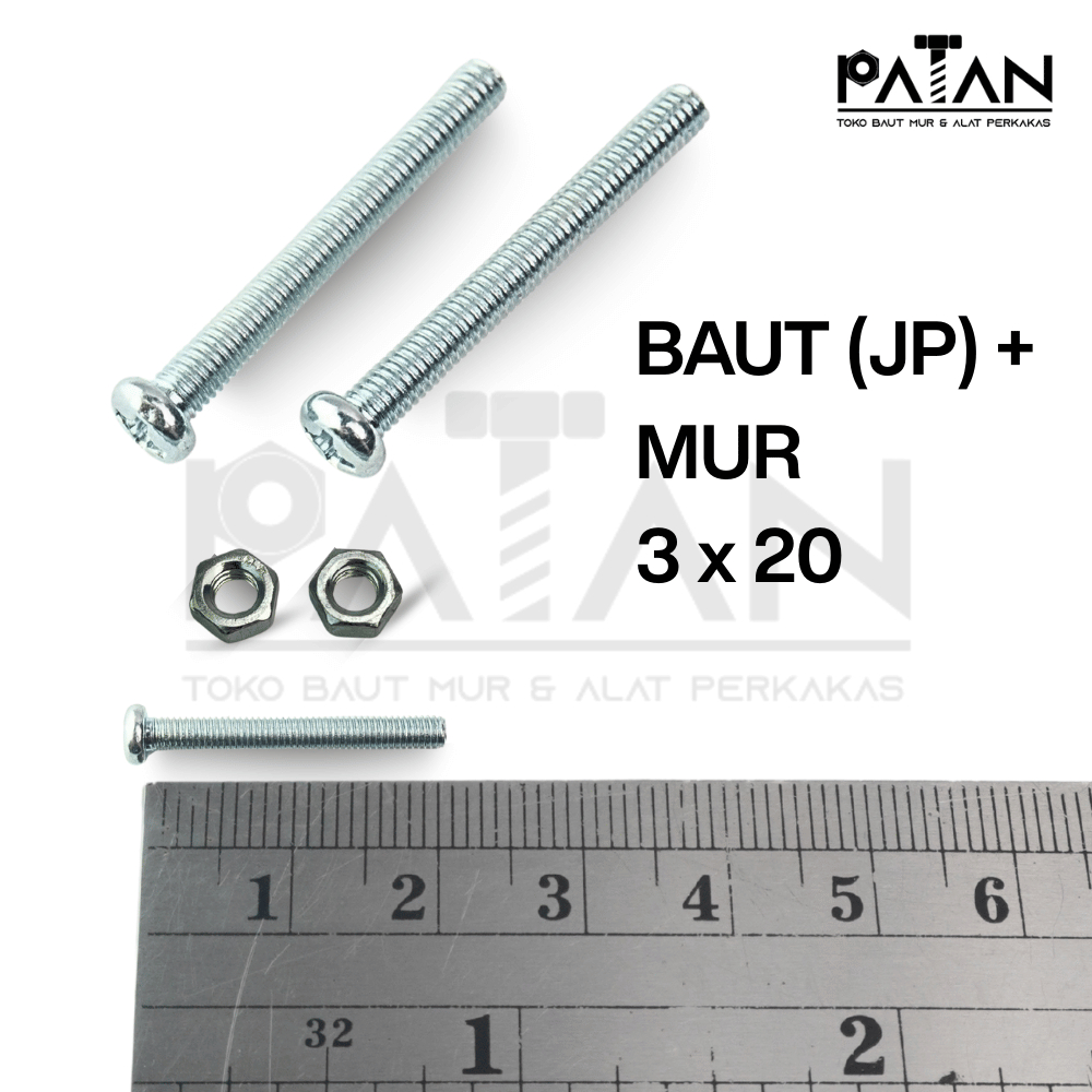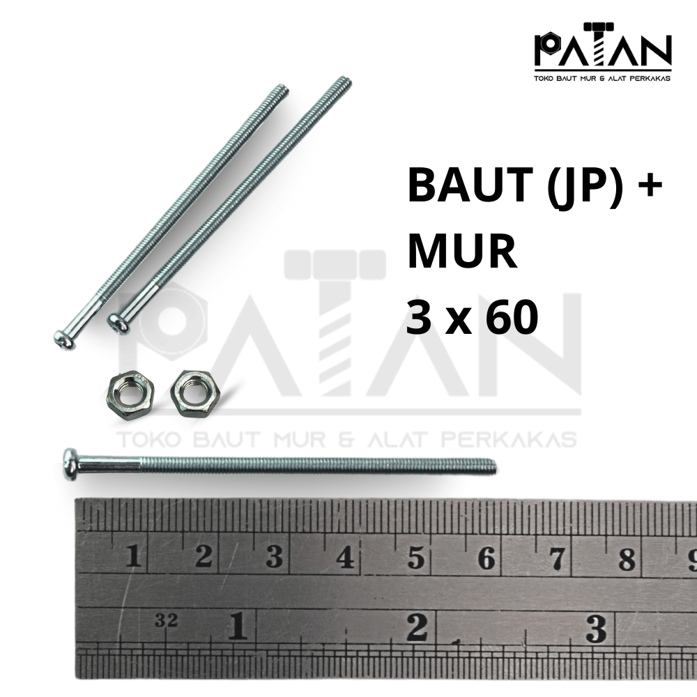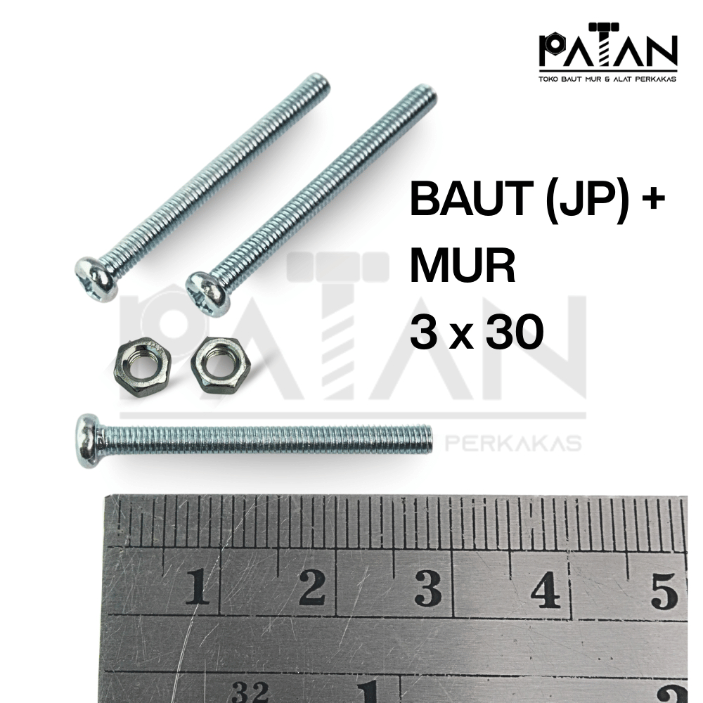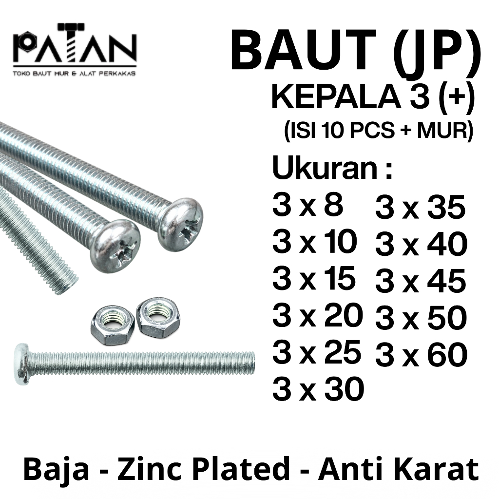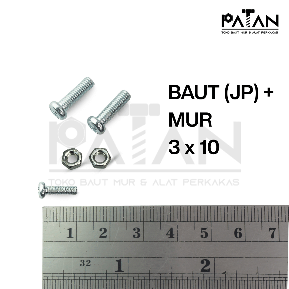 [ISI 10 PCS] Baut JP dan Mur M3 (Panjang 8-60) Pan Head (Kepala Bulat)