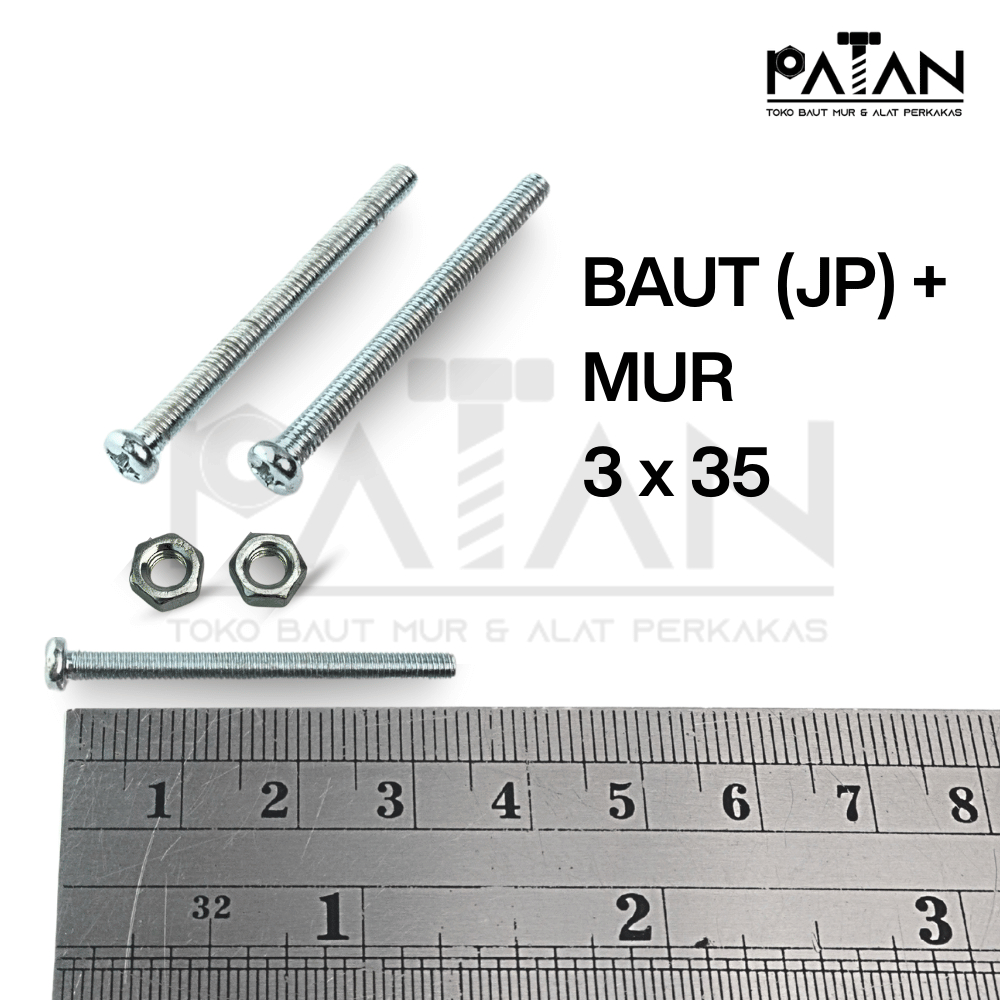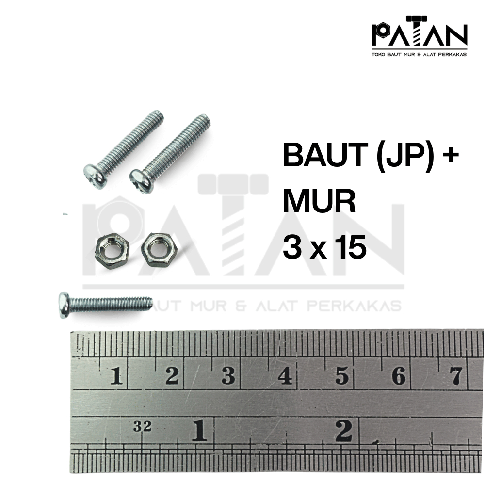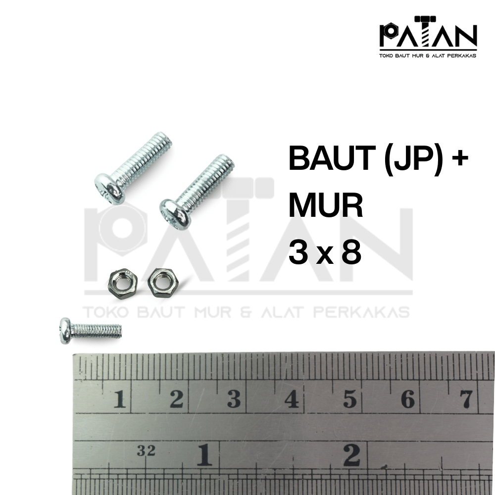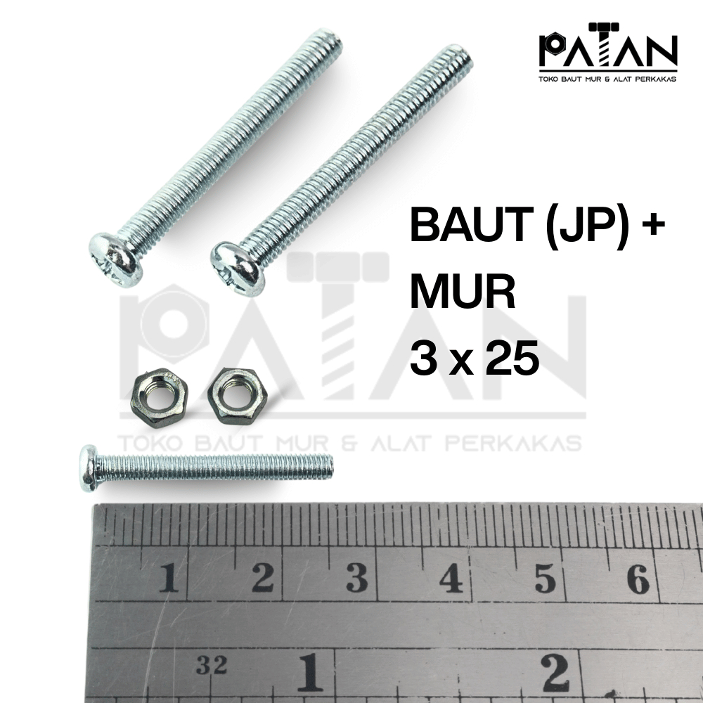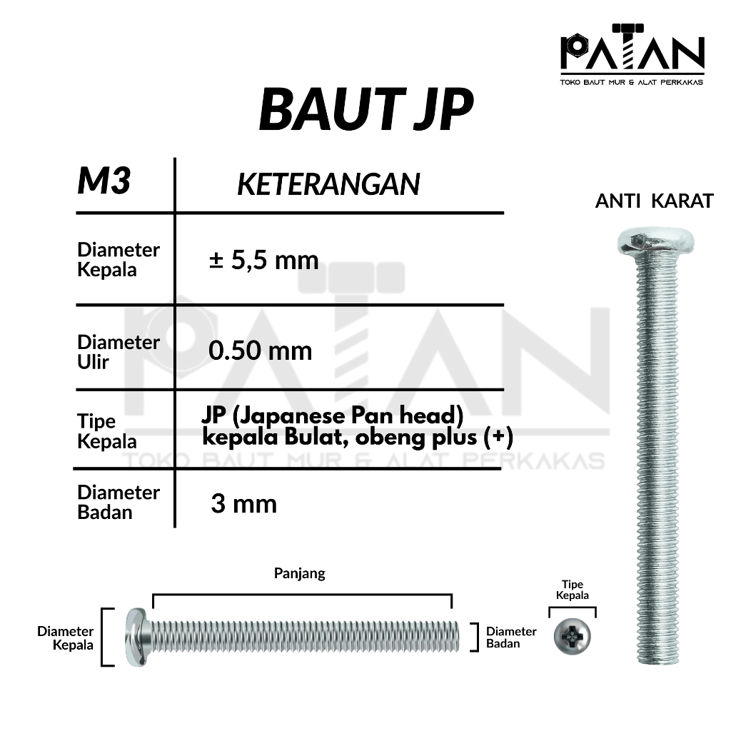 [ISI 10 PCS] Baut JP dan Mur M3 (Panjang 8-60) Pan Head (Kepala Bulat)