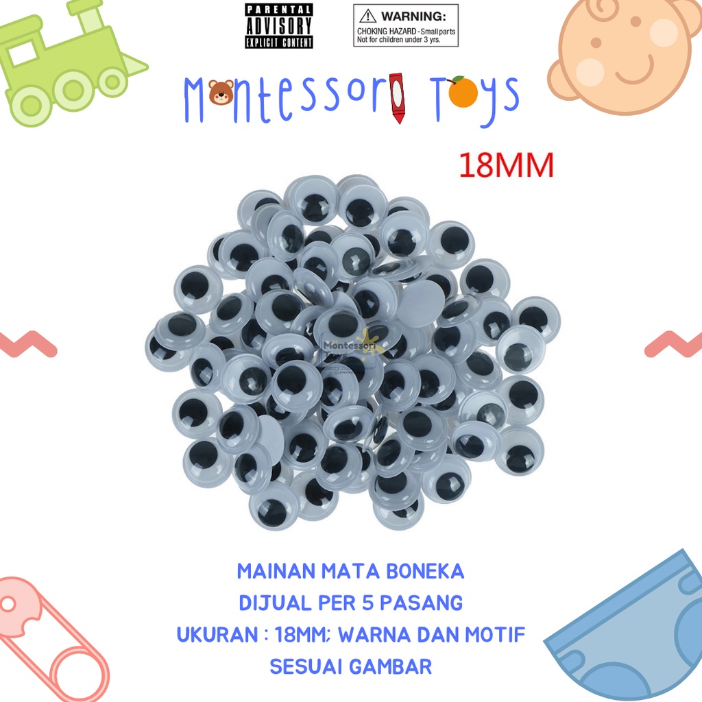 [ISI 5 PASANG] UKURAN 18MM MATA MAINAN / MATA BONEKA / MATA KOCAK / GOOGLY EYES / MATA-MATAAN