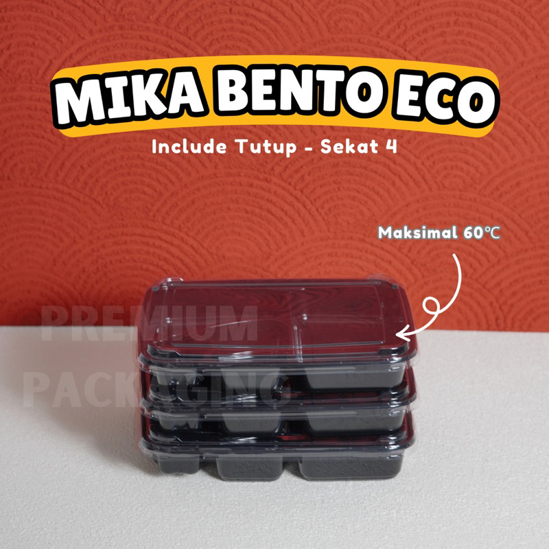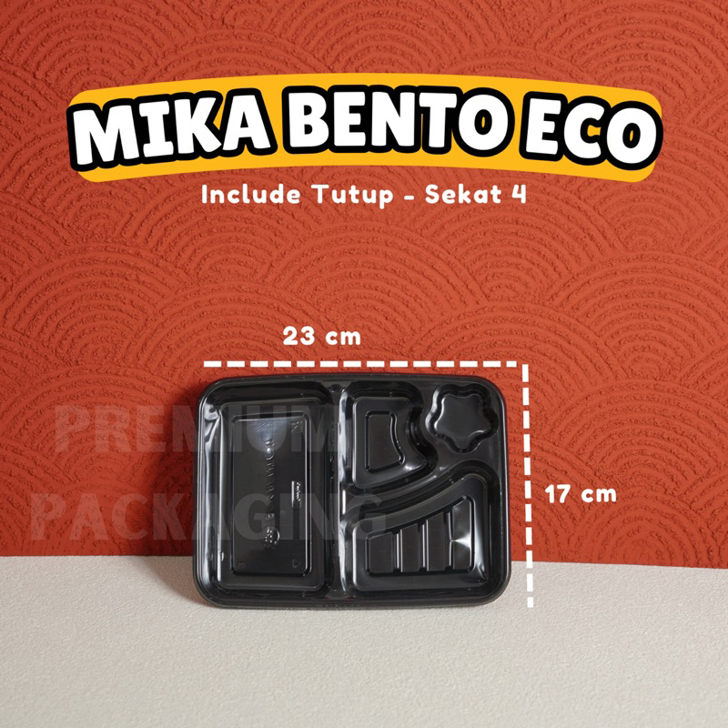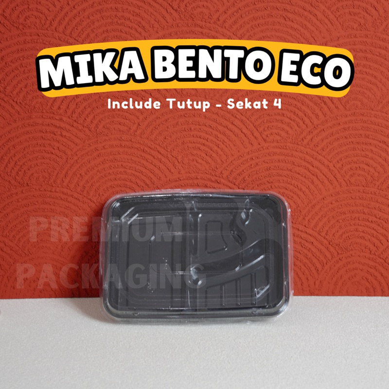 [ISI 50 PCS] Mika Bento / Box Bento Sekat 4 ECO / Mika Box Bento Plastik Sekat 4 Hitam / Tray Bento