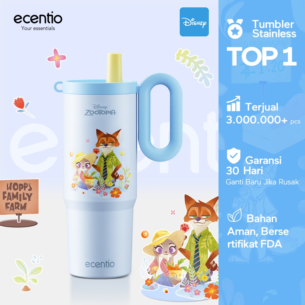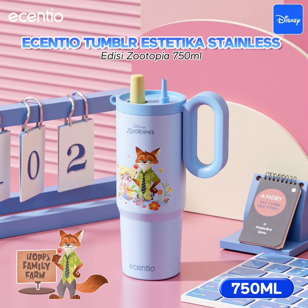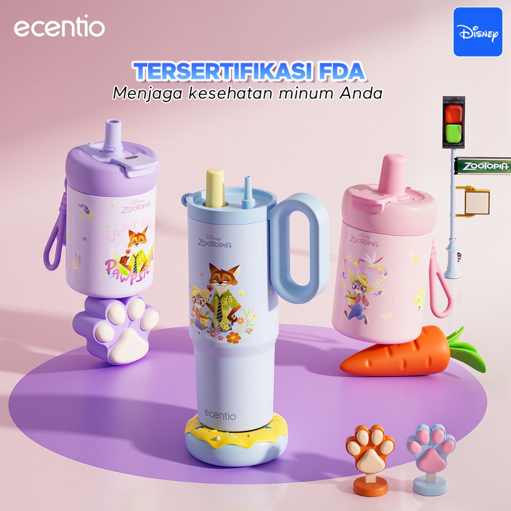 [Ice Grip Series] ecentio tumbler stainless 316 Disney Zootopia Co-brand 750ml tahan panas dingin 24 jam botol minum lucu aesthetic portable termos air panas botol minum anak botol minum anak perempuan tumbler anak