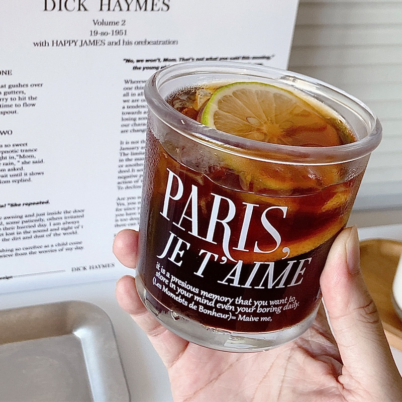 [JAFA] BONBON Gelas Beling Kaca Bening Aesthetic Tulisan Teks Aesthetic Korea Paris Clear Glass Text Letters Typography Cup