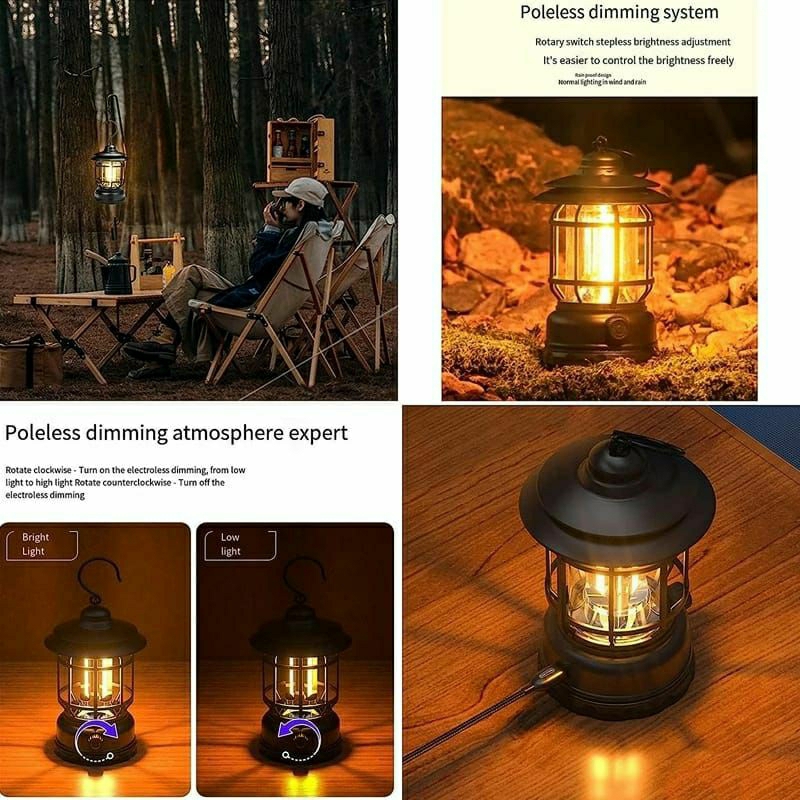{JS} Lampu Tenda Camping Lamp LED Emergency Lampu Lentera USB / Lampu Camping Lentera Retro Model Gantung Rechargeable Cahaya Kuning