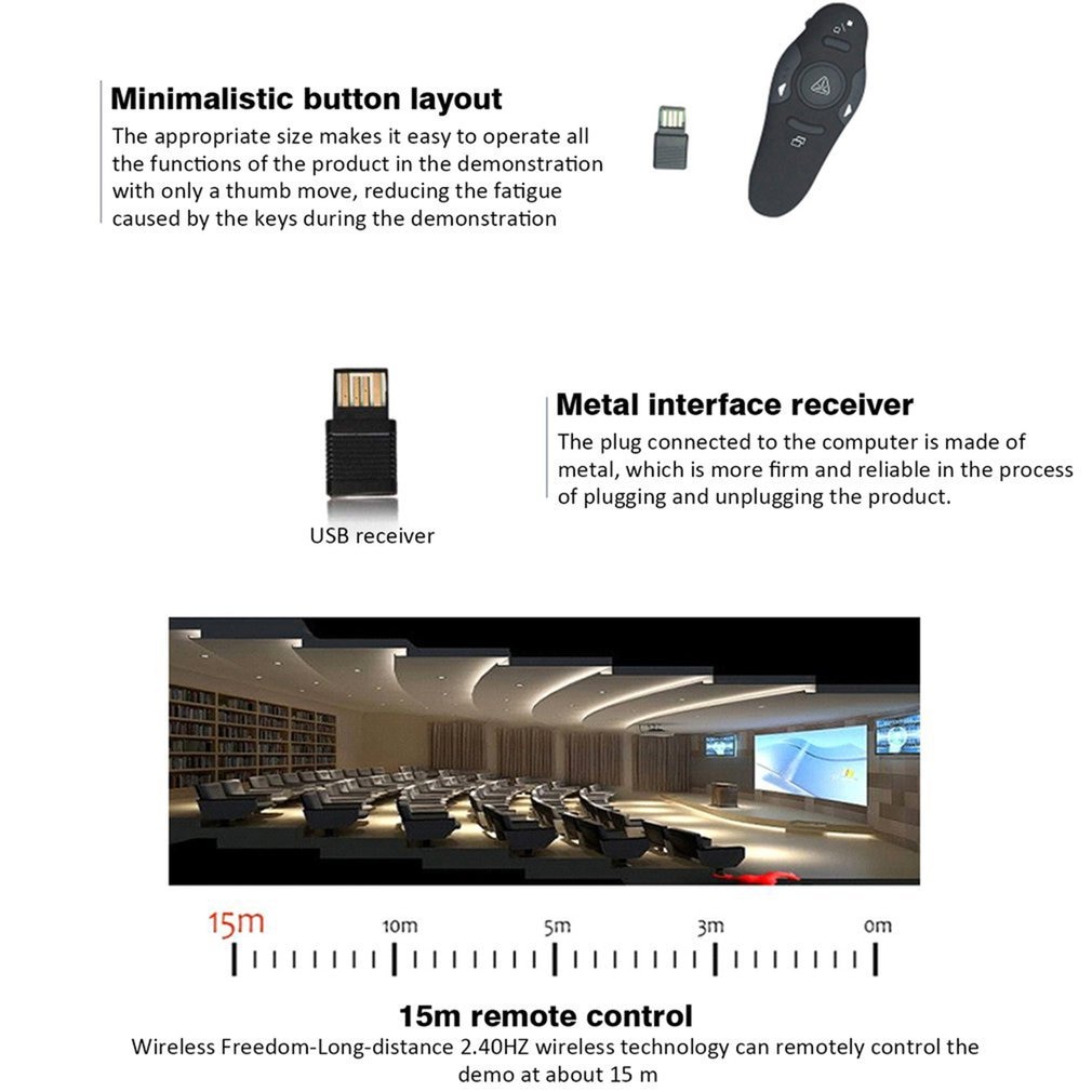 [KIKI] Wireless Laser Pointer 2.4GHz - Red Presenter Remote Control Alat Pen Tombol Untuk Presentasi Power Point Word Excel USB Microsoft Powerpoint Laptop PC Tablet Komputer