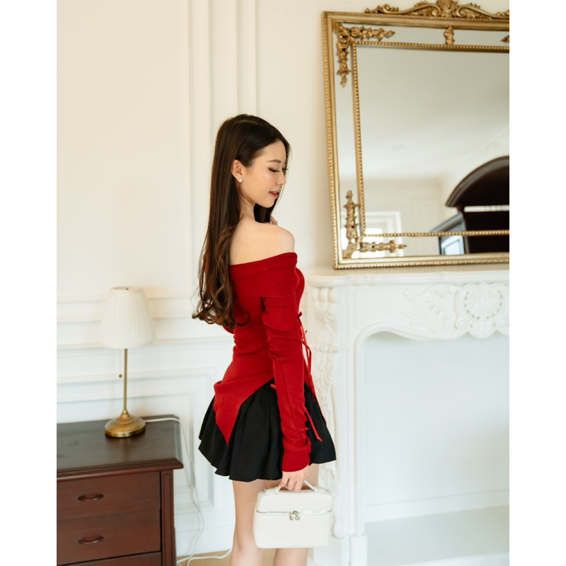 [ Keyclothingline ] Noelle Set / Setelan Atasan Knit Rok Celana Pita Natal