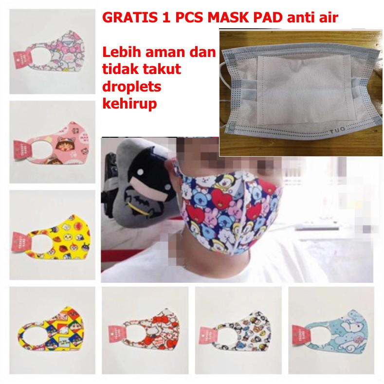 [LOGU] Masker mulut kartun lucu, Masker scuba pitta mask, Masker mulut kain reusable FREE MASK PAD