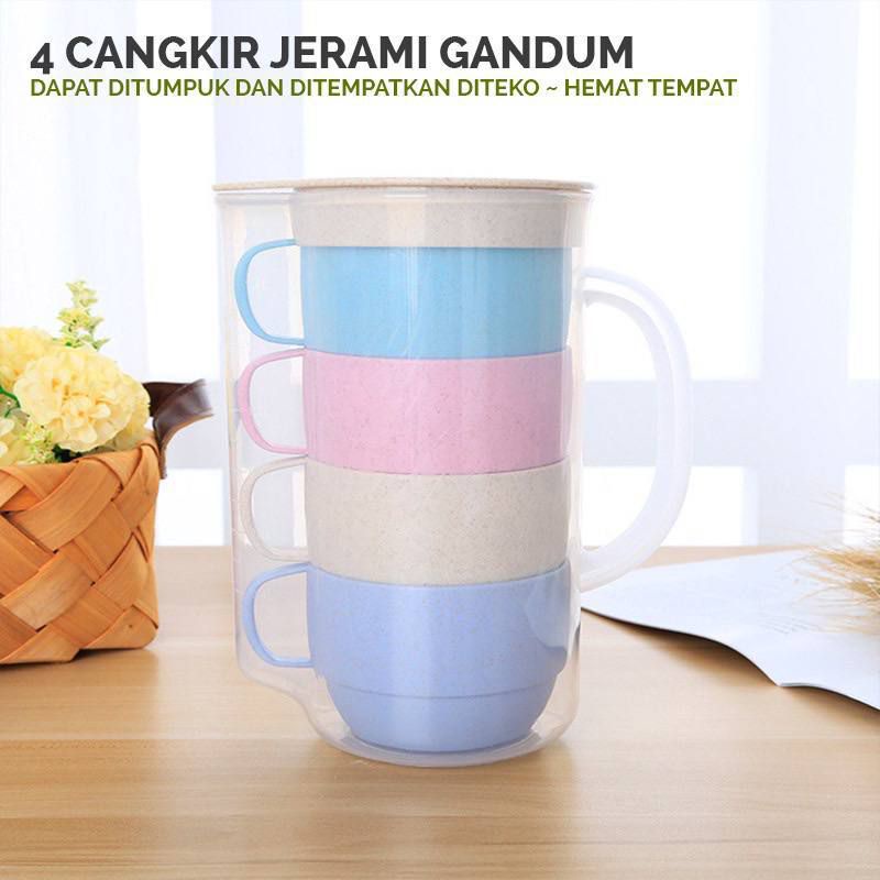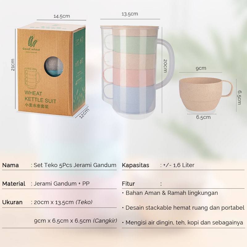[MD] TEKO SET 5 PCS TEKO GELAS CANGKIR SET TEKO BAHAN GANDUM JERAMI